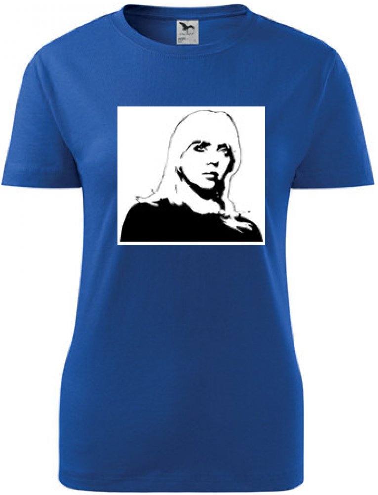 Modré dámské tričko Billie Eilish. nabízené velikosti jsou S,M,L,XL,XXL. Výběr z 12ti barev. Tričko patří do kategorií . Technologie potisku: Tisk na tričko je realizován pomocí termolisu a potisk je velice trvanlivý.