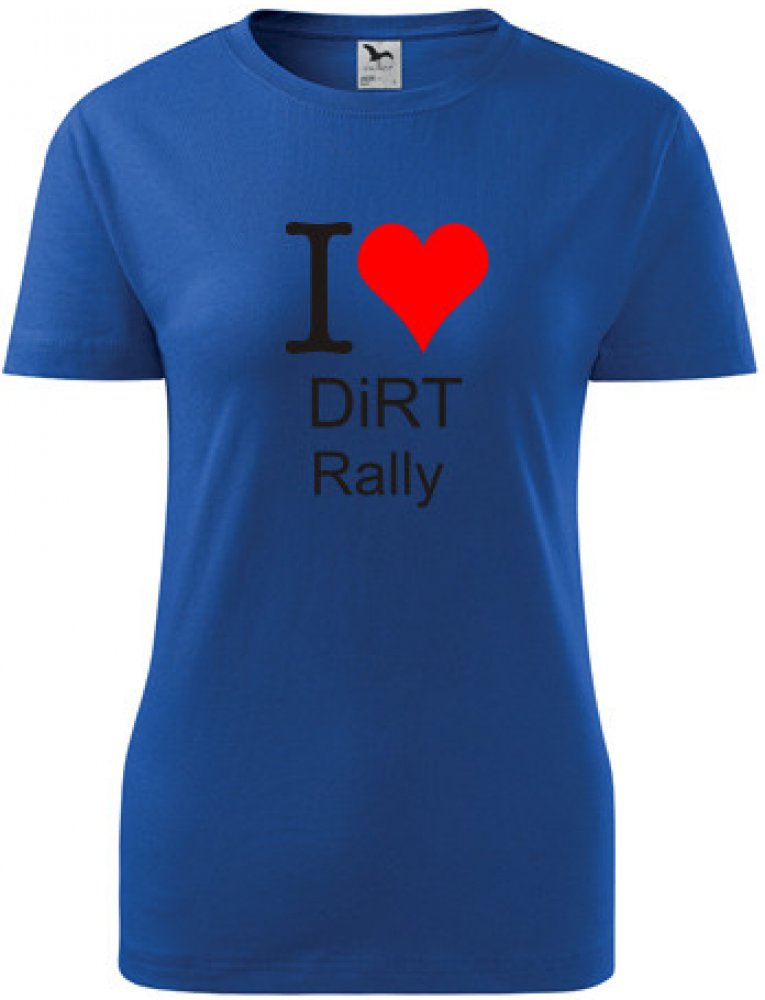 Modré dámské tričko I love DiRT Rally. nabízené velikosti jsou S,M,L,XL,XXL. Výběr z 12ti barev. Tričko patří do kategorií Trička I love závodní hry - dámská, Dárek pro hráčky počítačových her, . Technologie potisku: Tisk na tričko je realizován pomocí termolisu a potisk je velice trvanlivý.