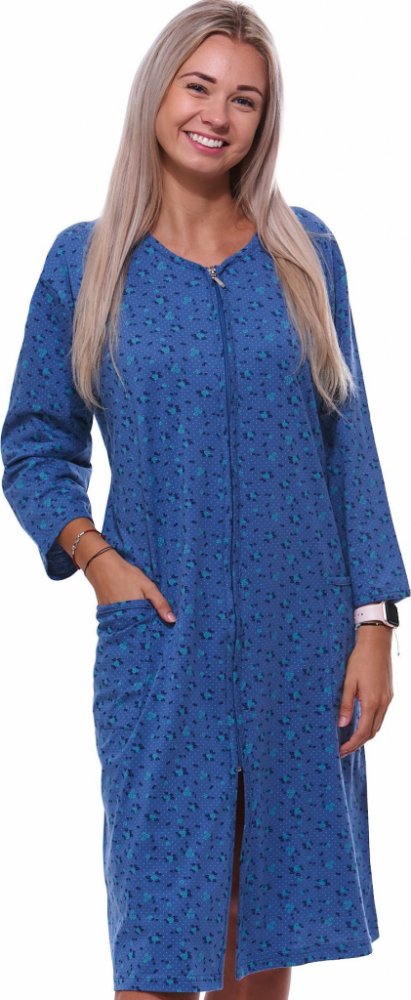 Modrý puntíkatý a růžičkový župan nebo košilka těhotenská i kojící na zip 1G0571 modrá