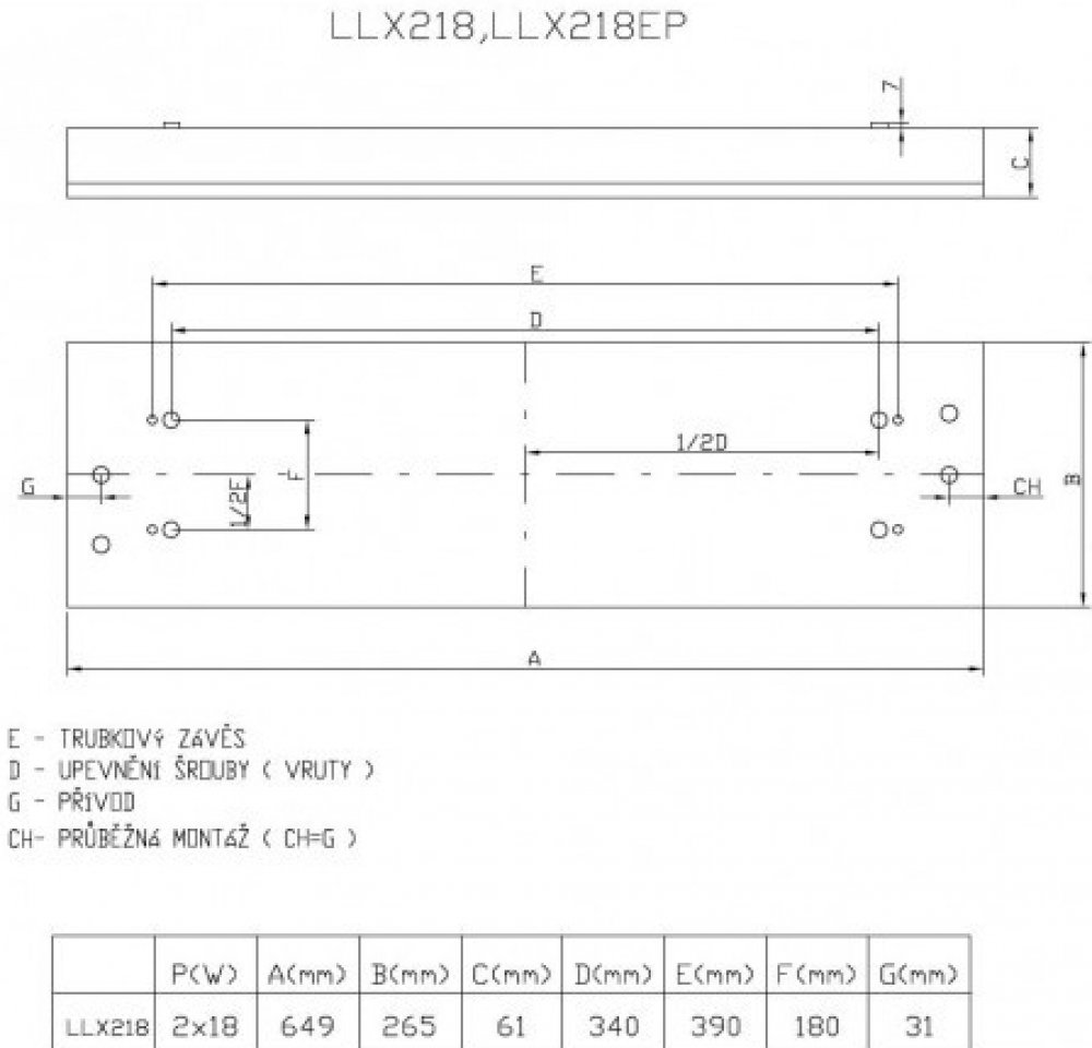 MODUS LLX 2x18 W hliník, nízké, elektron. předř. Těleso: Bíle práškově lakovaný (RAL9003) ocelový plech Optický systém: AL mřížka z vysoce leštěného hliníku s matnými příčnými lamelami B bílá parabolická mřížka ALDP vysoce leštěný parabolický optický systém ALMAT mřížka z matného hliníku El. výstroj: EP elektronický předřadník (standardní provedení) EPSA EP analogově stmívatelný 1-10V EPSD EP digitálně stmívatelný TRIDONIC ECO EPSDD EP digitálně stmívatelný DALI Aplikace: - pro přisazenou nebo závěsnou montáž - obchody, školy, společenské prostory, chodby Příslušenství: Trubkový závěs 54107, 54108, 54109, 54110, 54111, 54112 Lankový závěs 54103 Ochranná mříž OM Varianty: NZ - nouzový zdroj OK dvouokruhové zapojení RAL9006 povrchová úprava RAL 9006 Další informace: Standardní způsob instalace svítidel je přisazená montáž. Při závěsné montáži doporučujeme svítidlo vždy zavěsit ve 4 bodech. Svítidla s tlumivkou nelze doporučit do školních tříd - bude docházet ke zvukovým projevům, které mohou být rušíme. Do takovým prostor volte variantu s elektronickým předřadníkem (EP).