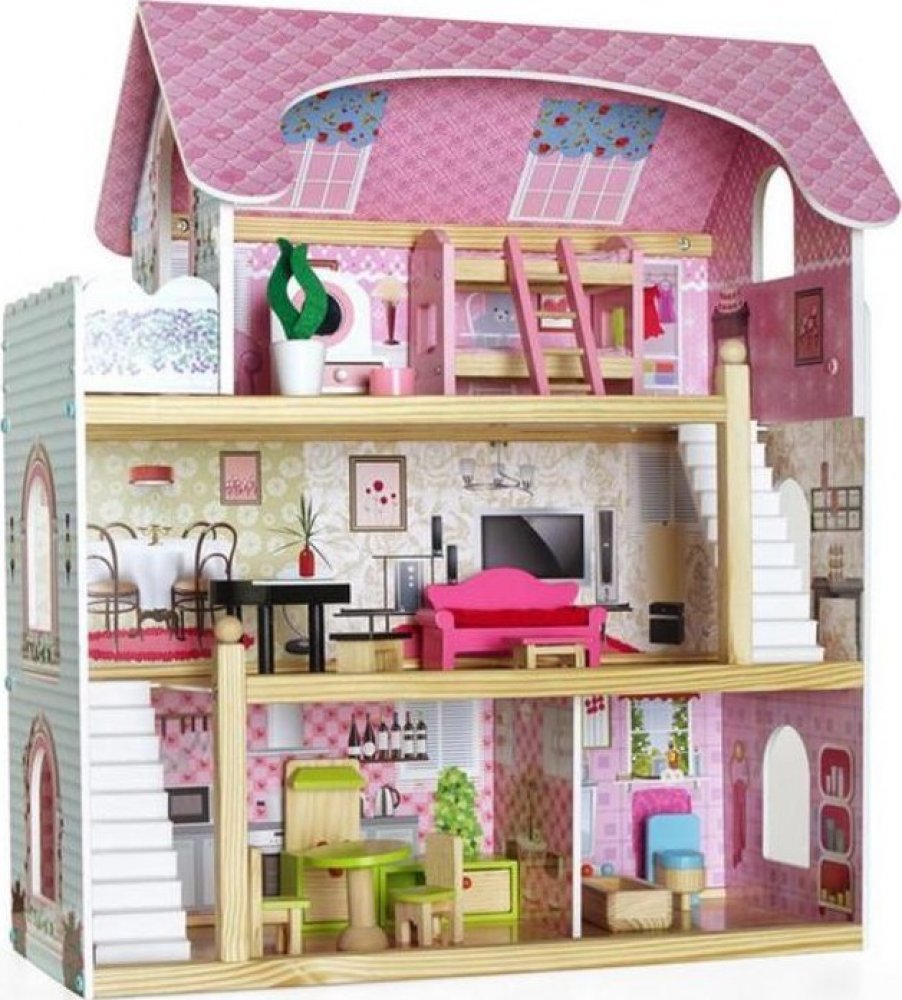 Stylový domov pro módní panenky do 15 cm a další malé obyvatele dětského pokoje se 17 ks dřevěného nábytku.