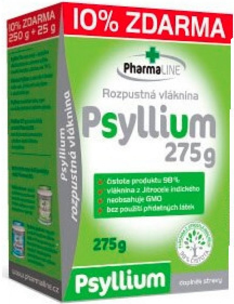 Psyllium je rozpustná vláknina z vyčištěného osemení jitrocele indického. Psyllium přispívá k normální funkci trávicího traktu a střev. V trávicím traktu na sebe váže vodu a zvětší svůj objem, vytvoří měkký gel. Neobsahuje fytáty, lepek ani složky mléčného či obilného původu. Maximální možná dosažitelná čistota produktu 98%. Balení obsahuje 275 g.