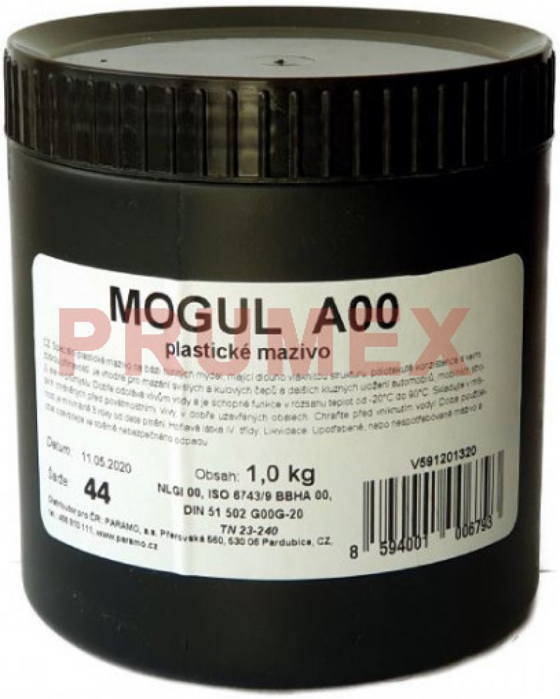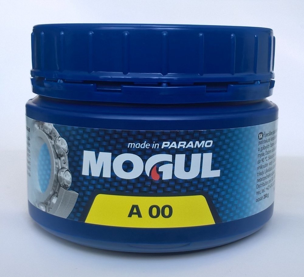 MOGUL A 00 je plastické mazivo vyrobené z kvalitních ropných olejových základů o vysoké viskozitě, zpevněných hlinitým mýdlem. Pro zvýšení přilnavosti je tento produkt zušlechtěn speciální adhezní přísadou. Má dlouhovláknitou strukturu, je tmavé až tmavozelené barvy, polotekuté konzistence.