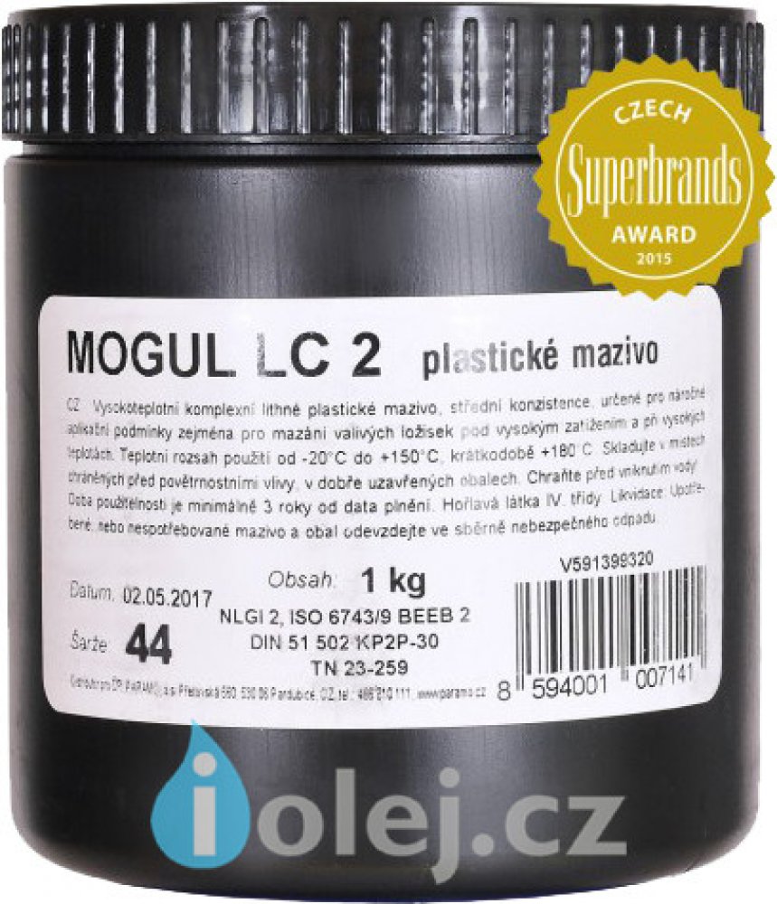 MOGUL LC 2 je plastické mazivo, vyrobené z pečlivě vybraných ropných základových olejů vysoké kvality, zpevněných komplexním lithným mýdlem.