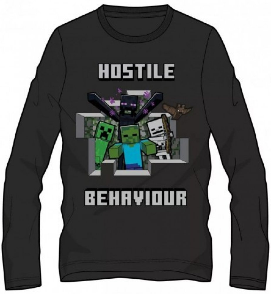 Kvalitní dětské tričko s postavami monster z oblíbené počítačové hry Minecraft MNC. Triko v černém provedení je vyrobené z příjemného 100% bavlněného materiálu. Tričko má kulatý výstřih, dlouhé rukávy.