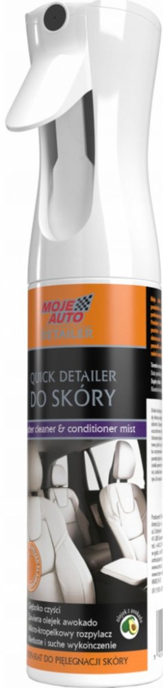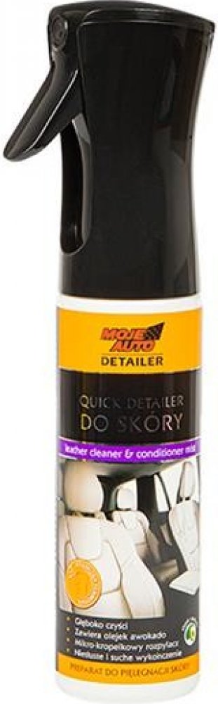 Quick Detailer for leather je unikátní přípravek pro čištění, péči a ochranu kožených povrchů, vybavený technologicky vyspělým rozprašovačem Flairosol. Atomizér umožňuje díky inovativní konstrukci rovnoměrné a přesné rozložení přípravku po celém povrchu pokožky, bez rizika rozmazání nebo přesycení některých partií.- Jeden přípravek pro čištění, péči a ochranu- Obsahuje přírodní avokádový olej- Rozprašovač na mikrokapky Flairosol- Nemastný a suchý povrch- Bezpečný pro čištěný povrch díky neutrálnímu pH.- Obnovuje přirozenou barvu pleti- Účinně odstraňuje každodenní nečistoty, prach a skvrny- Chrání pokožku před škodlivými účinky slunečního záření- Snadné použití, které umožňuje rychlé a efektivní čištění kožených povrchů- Kapacita: 290ml