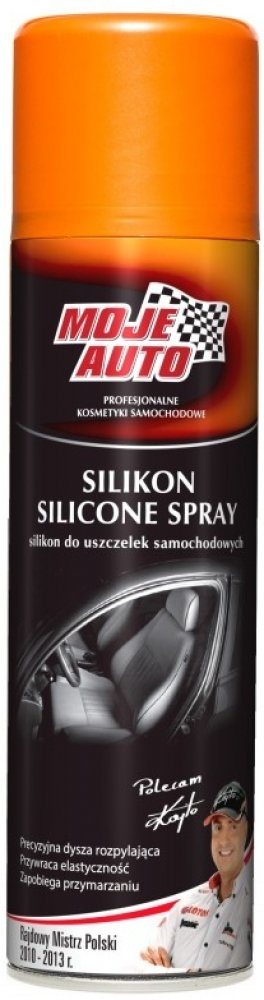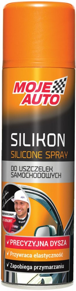 Moje Auto Silikon pro těsnění automobilů účinně maže, udržuje a chrání těsnění a obnovuje jejich elasticitu. Přípravek je určen k mazání těsnění automobilů u dveří, oken, kufru apod. Svým složením maže "na sucho", nezanechává mastný film. Díky tomu nedochází ke slepování těsnění a účinně zabraňuje jejich zamrzání v zimě.