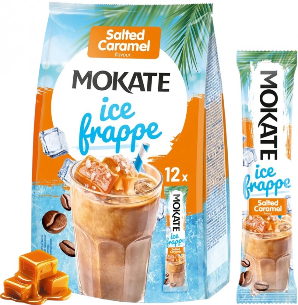 Ledová káva Mokate Ice Frappé Slaný karamel 12,5 g x 10 ksMOKATE Ice Frappe Salted Caramel lahodný kávový nápoj s příchutí slaného karamelu v praktickém sáčku.Stačí přidat studené mléko a během chvilky si v pohodlí domova připravíte osvěžující ledovou kávu.Ideální pro horké dny!Objevte ledové kávy Mokate!Objevte ledové kávy Mokate a ponořte se do jedinečného okamžiku relaxace s Ice Frappe se slanou karamelovou příchutí . Je to perfektní kombinace intenzivní kávy, krémové konzistence a nádechu karamelu se špetkou soli pro ty, kteří milují sladkost s charakterem.Každé balení obsahuje 10 porcí po 12,5 g stačí přidat studené mléko nebo vodu, zamíchat a vychutnat si lahodný, chlazený nápoj v pohodlí domova , na pláži nebo při setkáních s přáteli. Skvělá alternativa ke klasické kávě v horkých dnech.Mokate Ice Frappé Salted Caramel káva, která chladí, osvěžuje a hýčká vaše chuťové pohárky.Jak chutná Mokate Ice Frappé Salted Carmel?Intenzivní, ale jemná kávová chuť bez hořkosti a s jemným, příjemným závěremSladký, má