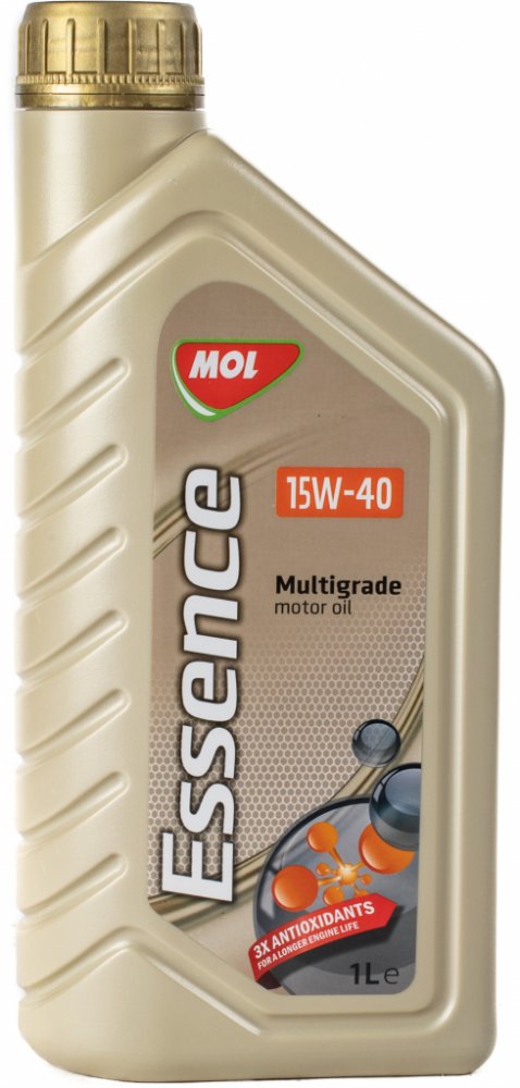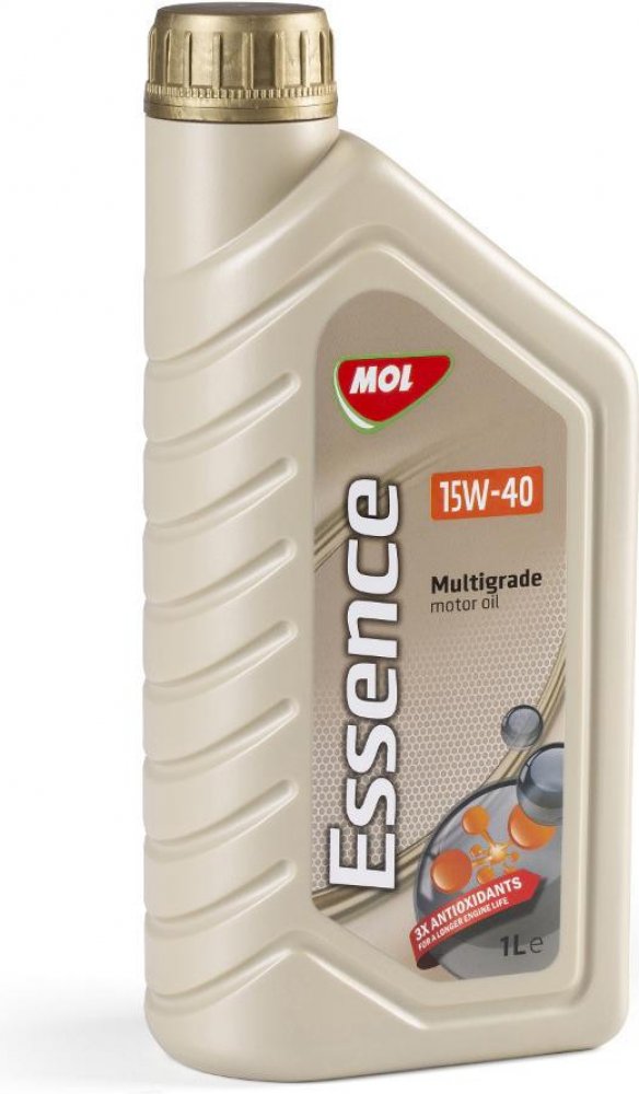 MOL Essence 15W-40 je moderní produkt vyroben z vysoce výkonných minerálních základových olejů, které poskytují trojitou antioxidační ochranu, použitím komplexního systému přísad, vyvinutý pro osobní automobily a užitková vozidla. Tento značkový a výkonný motorový olej zajistí vašemu vozidlu dlouhý interval mezi výměnou a opotřebením. Specifické vlastnosti oleje MOL Essence 15W-40: Trojitá antioxidační ochrana. Zabraňuje vzniku volných radikálů způsobujících stárnutí oleje pomocí trojité antioxidační ochrany, čímž se zvyšuje životnost motorového oleje a motoru. Vynikající střihová stabilita. Zachovává si viskozitní vlastnosti během celého výměnného intervalu oleje. Nízká těkavost. Snižuje spotřebu motorového oleje a snižuje emise škodlivých látek. Výkonové třídy, specifikace MOL Essence 15W-40: SAE 15W-40 API SJ/CF Trojitá antioxidační ochrana Volné radikály – jedni z největších nepřátel vašeho motoru Nejmodernější motory pracují při velmi vysokých teplotách, což významně zatěžuje použité motorové oleje. Škodlivé volné radikály se generují v motorovém oleji, jakmile se dostane do kontaktu se škodlivými složkami produktů spalování paliva a kyslíku. Volné radikály urychlují stárnutí motoru a snižují jeho výkon. Vlastnosti motorového oleje se v důsledku oxidace zhoršují a olej ztrácí významnou část své schopnosti chránit motor, což způsobuje kontaminaci oleje a ukládání nečistot v motoru. Pohyblivé součásti se opotřebovávají, vzniká koroze a zkracuje se jejich životnost. Nová receptura s trojitou antioxidační ochranou Speciální aditiva v řadě motorových olejů MOL Essence úspěšně zabraňují procesu stárnutí motorového oleje, poskytují maximální ochranu proti škodlivým účinkům volných radikálů a prodlužují tak významně životnost motorového oleje i motoru. Navíc pečlivě vyvážený systém aditiv nového složení poskytuje trojnásobnou ochranu proti antioxidantům v porovnání s běžnými motorovými oleji, což zaručuje vynikající schopnost redukovat přítomnost volných radikálů primárně zodpovědných za stárnutí motorových olejů a prodlužuje se tak životnost oleje i motoru. Balení MOL Essence 15W-40: 1L 4L 205L Mazací plán MOL