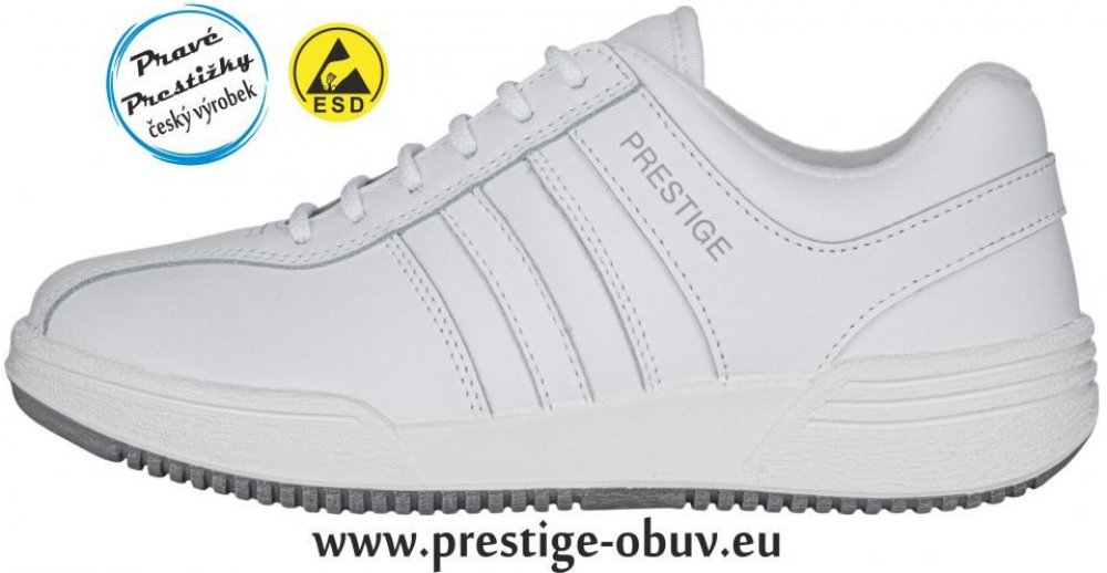 V celobílém provedení je obuv antistatická a splňuje požadavky norem ESD na ochranu před elektrostatickým výbojem. Je vybavena tmavou antistatickou stélkou, ale samozřejmě je možné ji použít i na běžné denní nošení. Pracovní obuv MOLEDA SPORT vychází koncepčně z tradičních PRESTIGE, má však nižší mezipodešev, která zaručuje vyšší stabilitu při sportu, práci i běžné chůzi a je vyráběna na širším ko...