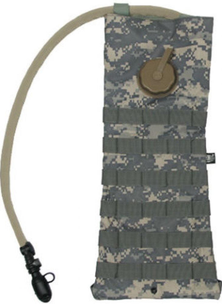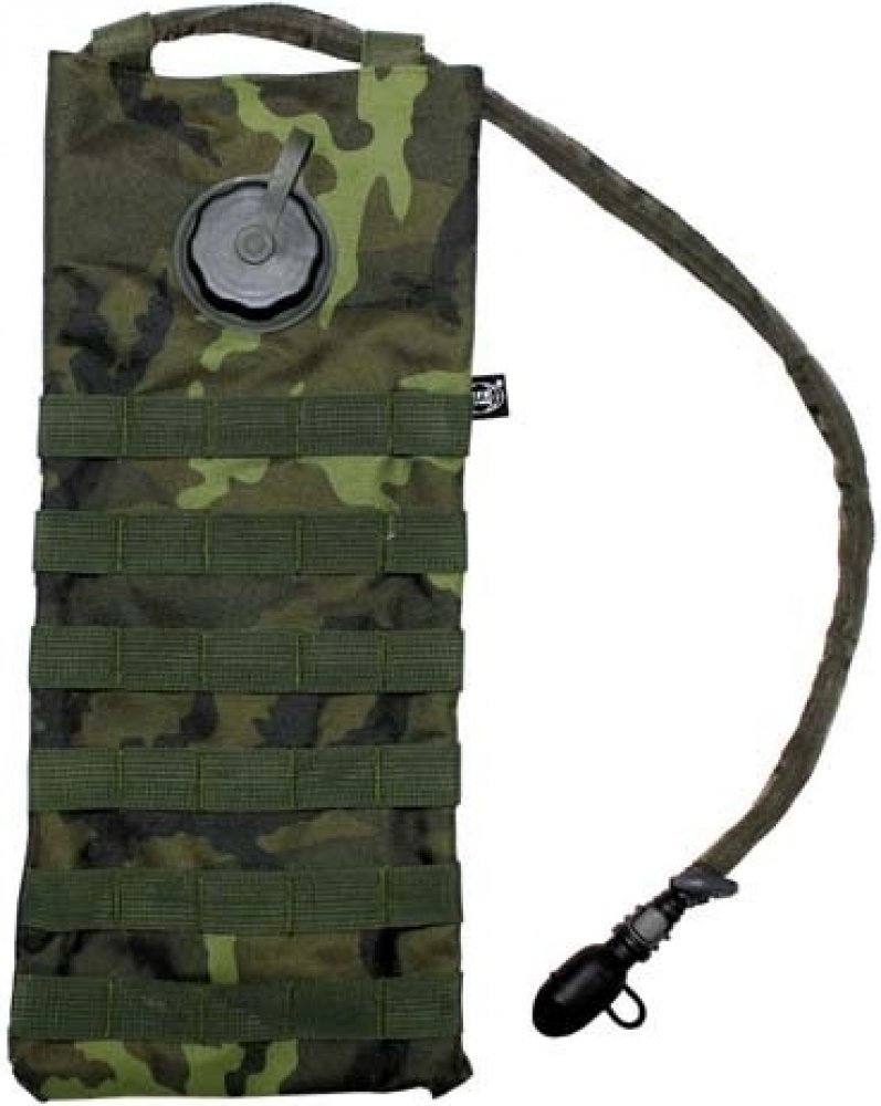 Vak na vodu (hydratačný) od nemeckého výrobcu MFH s objemom 2.5lVak obsahuje flexibilnú hadičku s kvalitným ventilom čo umožňuje piť tekutinu aj počas chôdze. Možnosť upevniť do vaku ako vložku (pomocou MOLLE systému) alebo nosiť ako samostatný vak.Čo je Molle systém? Systém Molle je popruhová nosná väzba, ktorá sa skladá z horizontálne umiestnených popruhov so šírkou 1 palec (2,54cm) s vertikálnym rozostupom 1 palec. Popruhy sú prišité k základovej tkanine (napr. na veste či batohu) v rozostupe 1,5 palca (3,81cm). Tento systém si v roku 1998 patentovali ozbrojené sily USA. Dnes je práve Molle systém najviac používanou popruhovou väzbou po celom svete.Použitie:turistika, horolezectvo, hry atď..Rozmery:46 x 18 x 3cmVýhody:nemecký výrobca, kvalitné prevedenie, možnosť nosiť aj ako samostatný vak