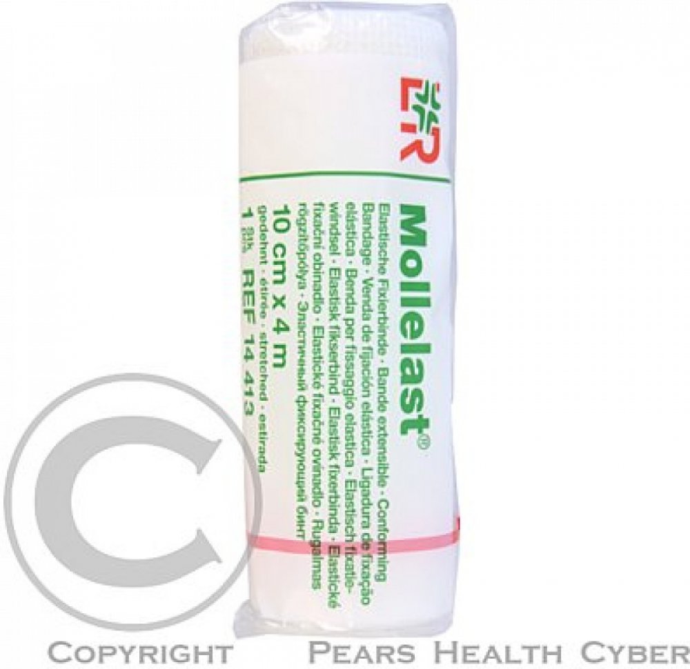 Mollelast je univerzální elastické obinadlo, které se používá ke znehybnění částí těla včetně kloubů, k fixaci obvazů nebo krytí na rány. Je vhodný také pro mírnou kompresi, zejména prstů na rukou a na nohou. Rozměr: 10cm × 4m. Obinadlo je baleno v celofánu. Zdravotnický prostředek.