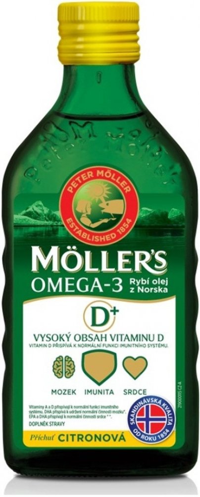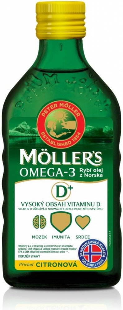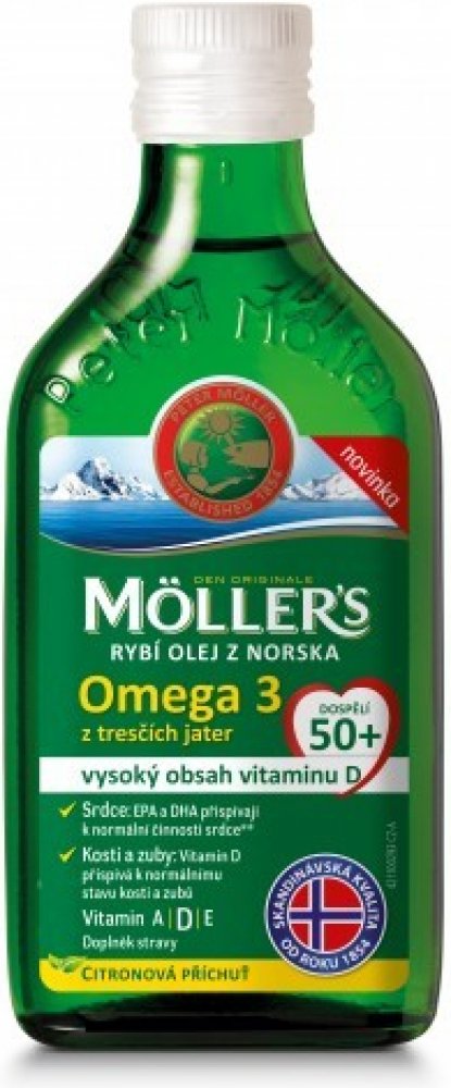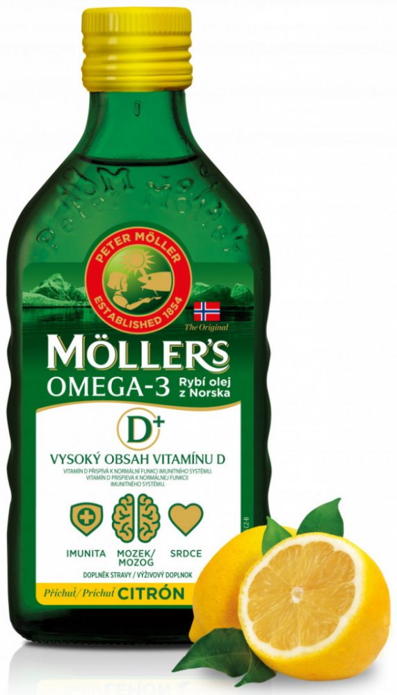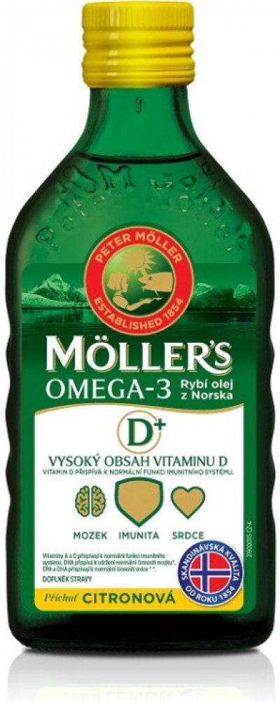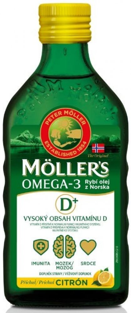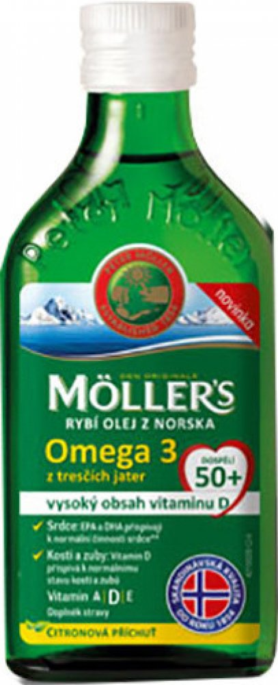 Orkla Health oleje 250 ml srdce unisex 300 g Möller's pro seniory perorální od 3 let citron Norsko omega-3 mastné kyseliny srdce a cévy 50 1200.0 mg Kdykoliv 1 za den Nespecifikováno s vitamínem D
