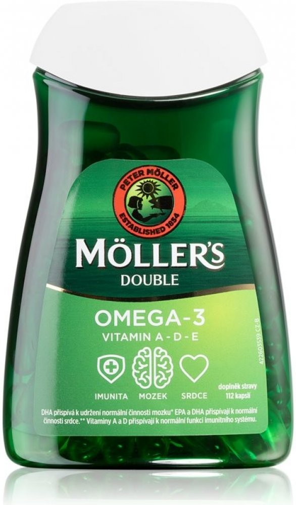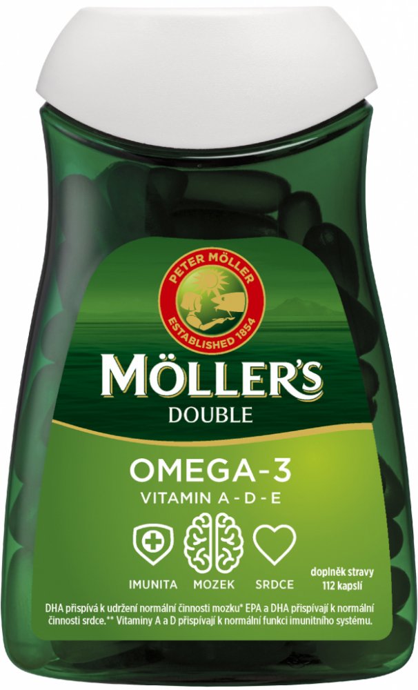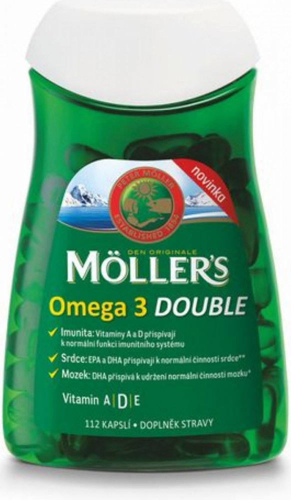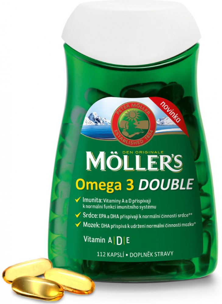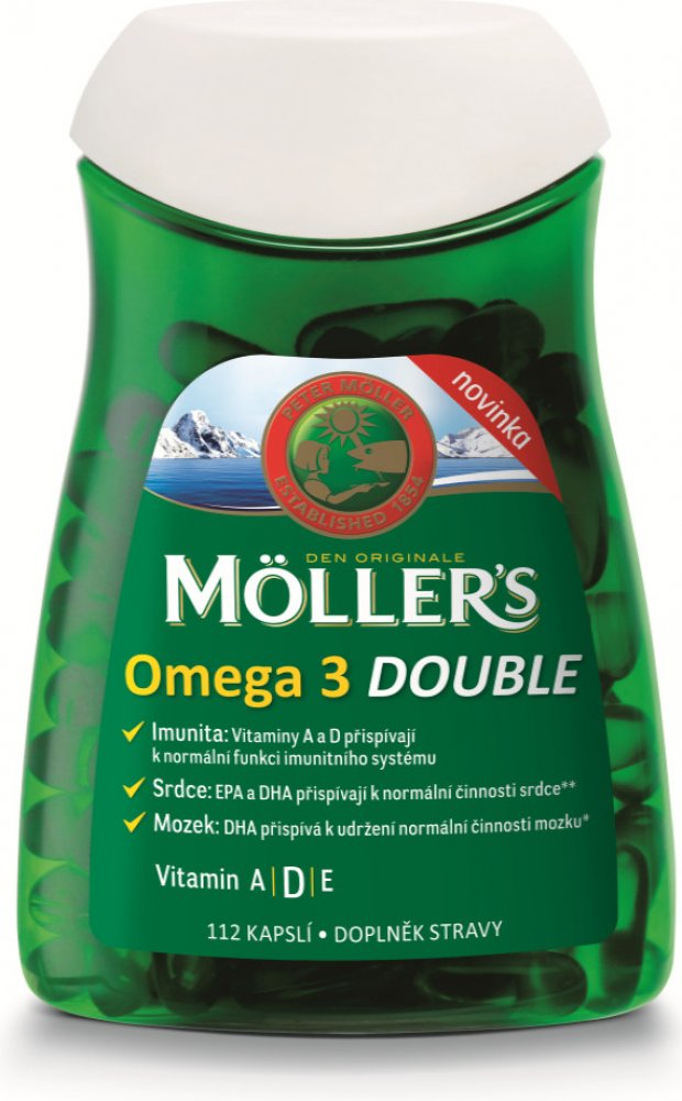 Doplněk stravy Möller`s Double je kombinací přírodní omega 3 z tučných ryb a vitaminů A, D a E. Je dobrou alternativou pro ty, kteří dávají přednost kapslím před tekutou formou rybího oleje.