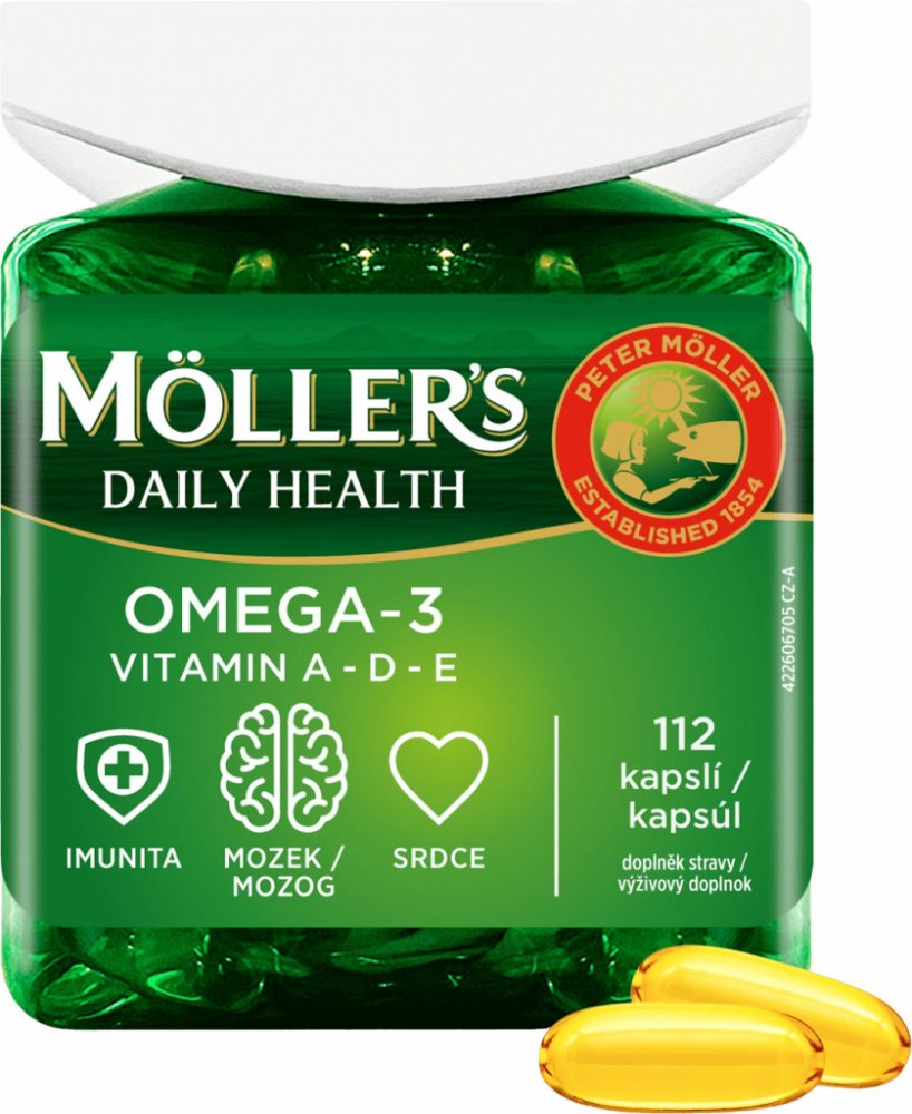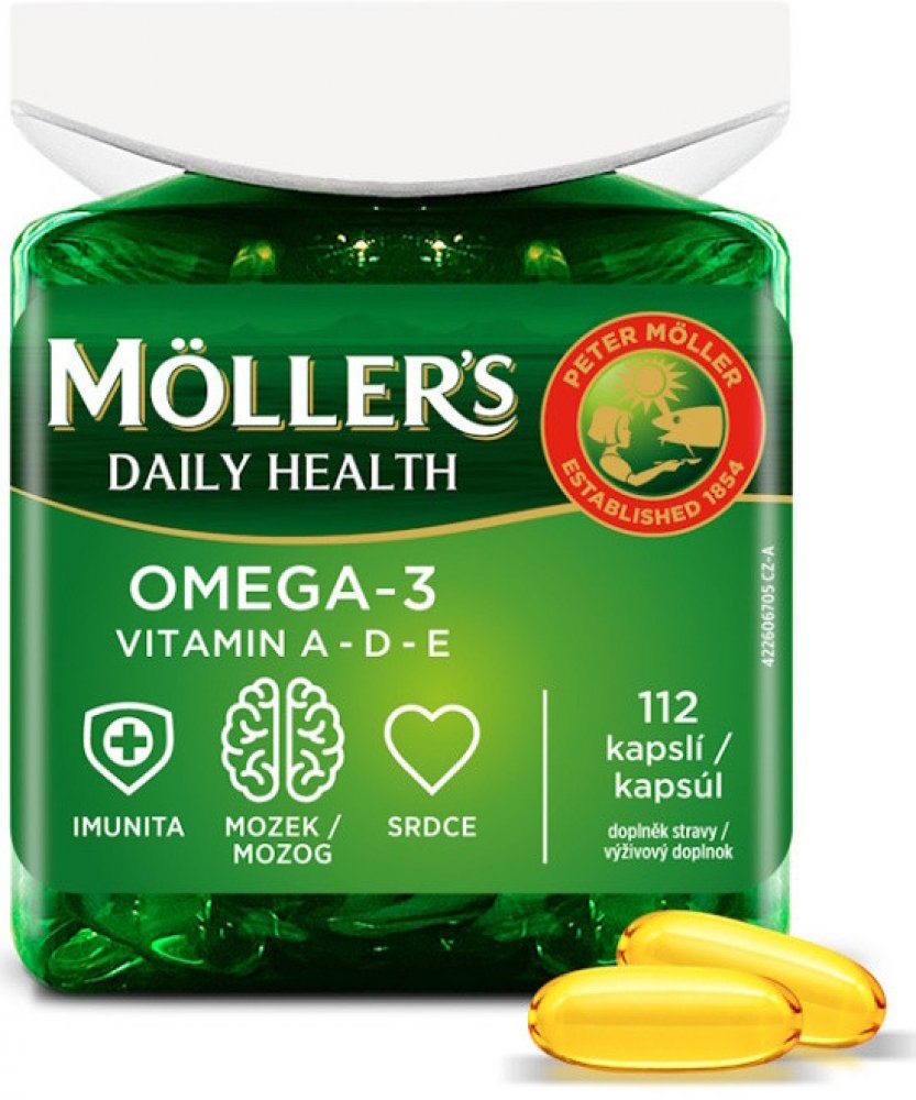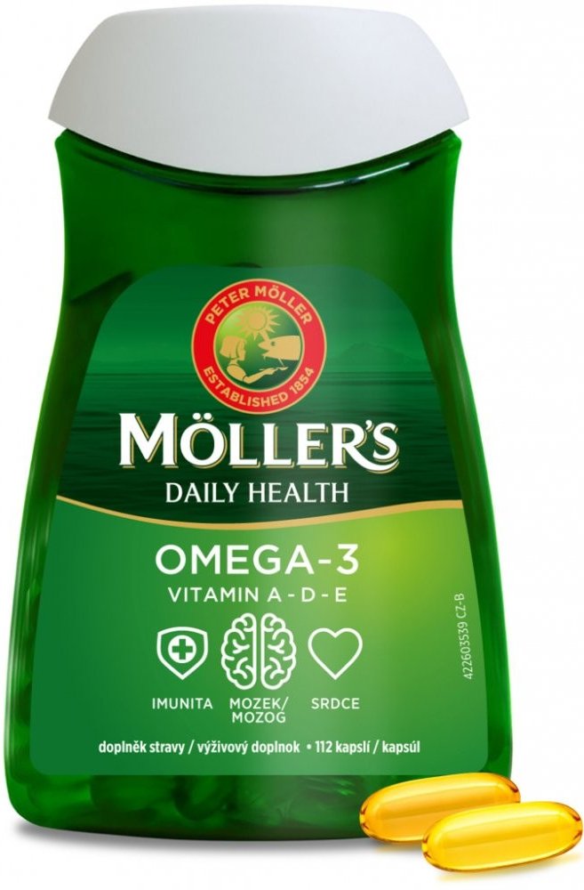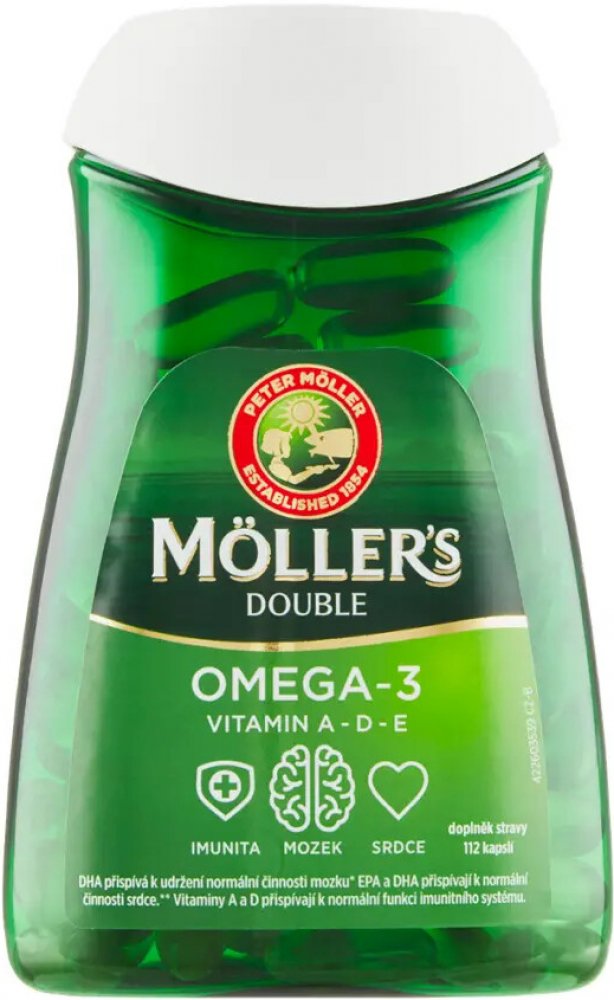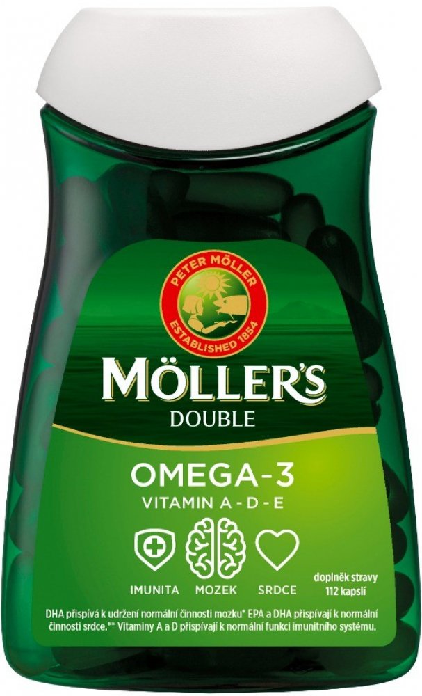 Doplněk stravy Möller`s Double je kombinací přírodní omega 3 z tučných ryb a vitaminů A, D a E. Je dobrou alternativou pro ty, kteří dávají přednost kapslím před tekutou formou rybího oleje.