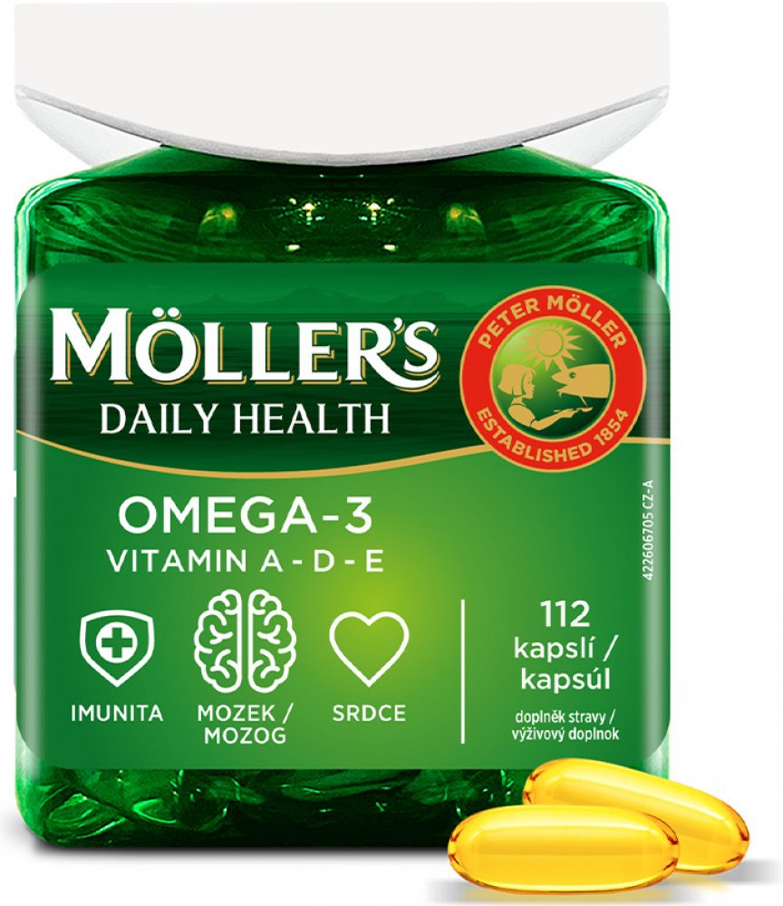 Orkla Health 112 tbl kapsle 250 ml srdce unisex 0 g Möller's pro dospělé perorální od 3 let bez příchuti Norsko omega-3 mastné kyseliny srdce a cévy s postupným uvolňováním 56 650.0 mg Kdykoliv 2 za den Mimo dosah dětí
