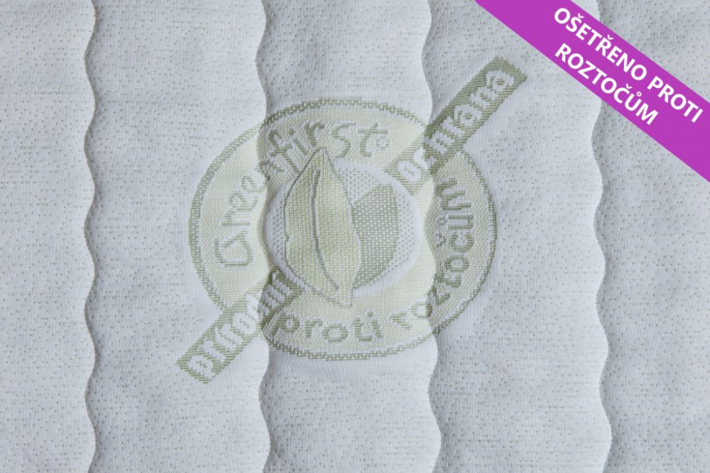Potah GREEN FIRST prošitý antialergickým PES rounem 150 gr/m2. Pratelný na 60°C. Snímatelný se zipem do L (nad 140cm šíře zip dokola)