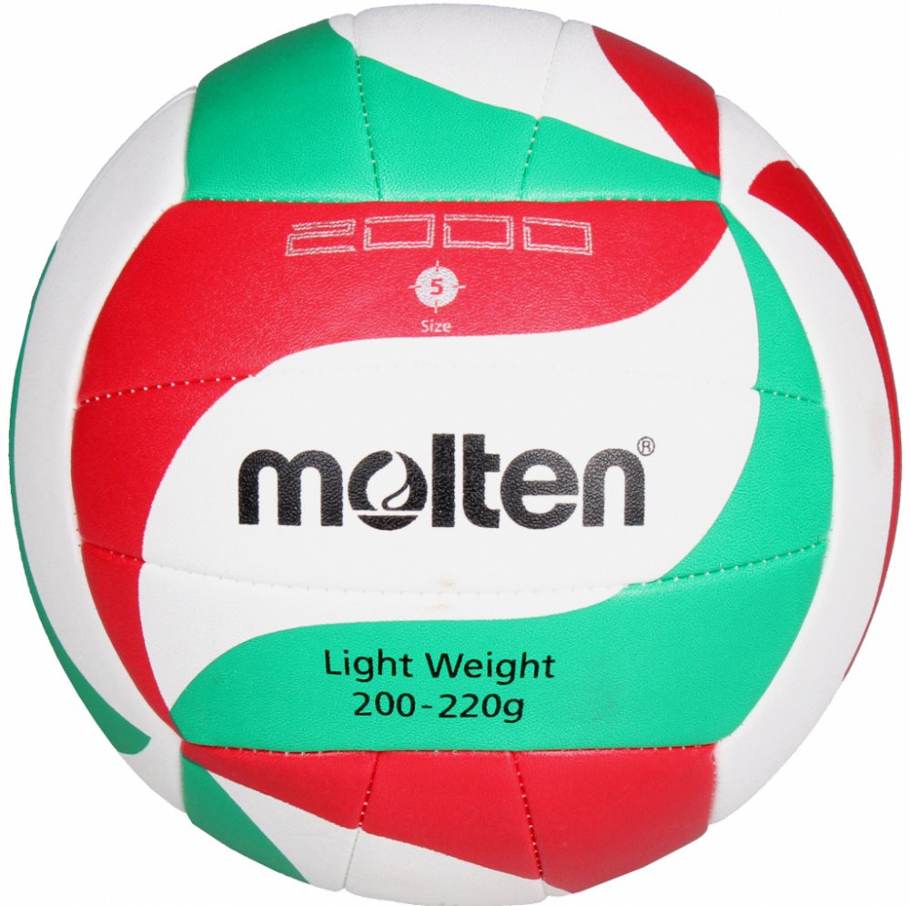 Odlehčený volejbalový míč Molten V5M2000-L o velikosti 5. Lehčí volejbalový míč Molten V5M2000-L pro začátečníky s váhou 210g. Míč je z měkké lesklejší syntetické kůže. Na rozdíl od vyšších typů volejbalových míčů je tento strojové šitý, takže panely nejsou lepené. Zajímavostí je i design. Tento odlehčený míč má stejný design jako celá nová řada od Moltenu, ale panely má poskládané jako starší typ...