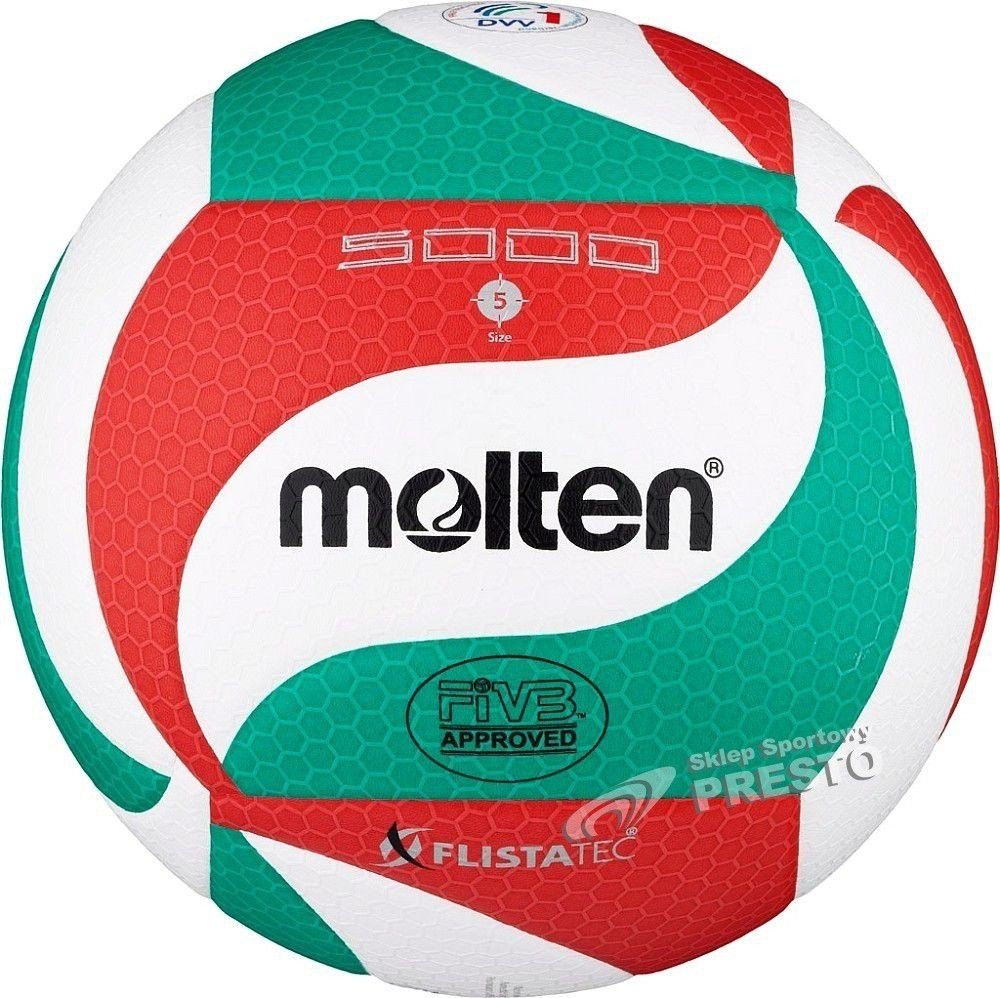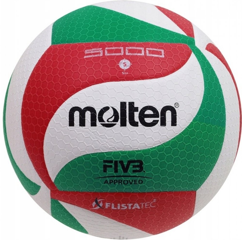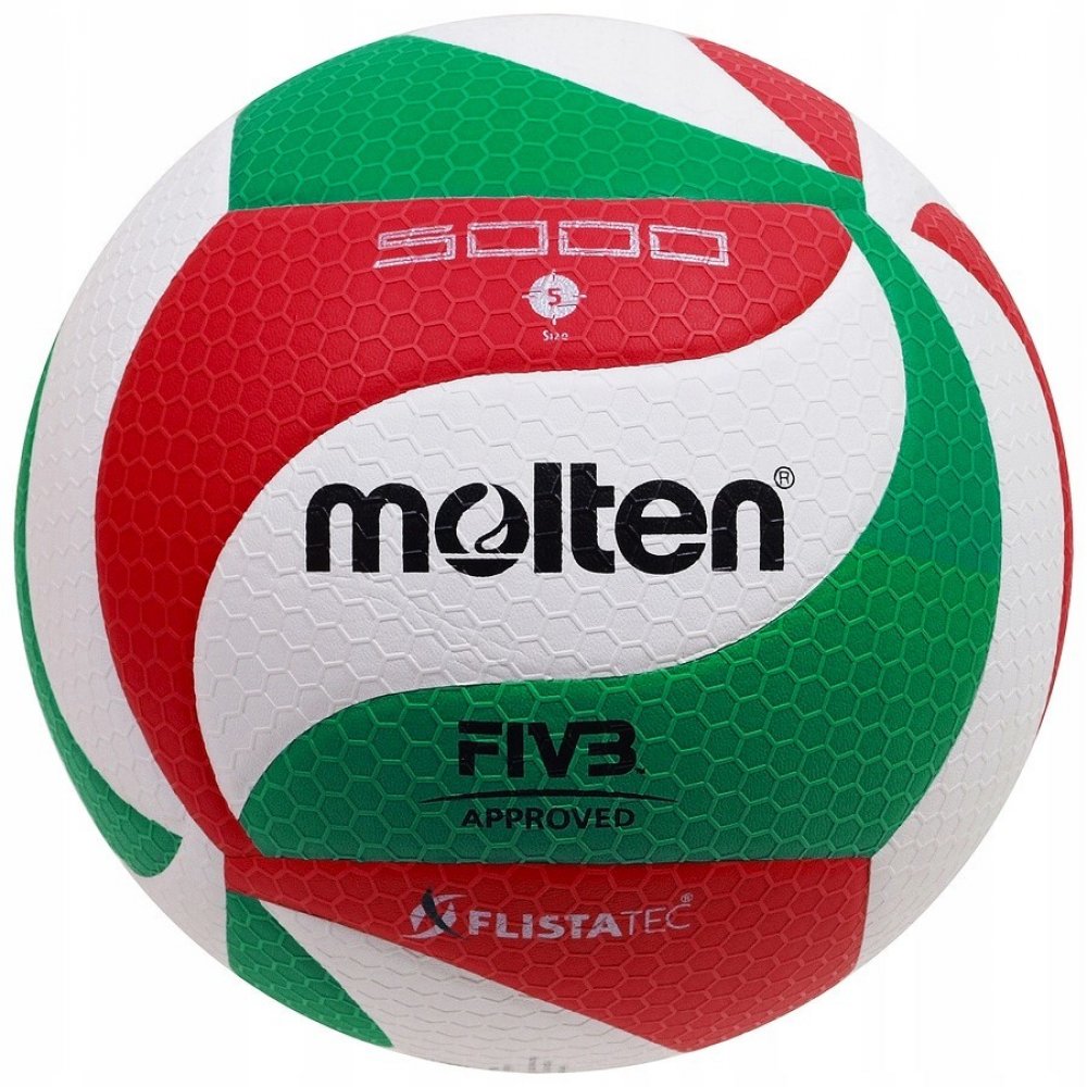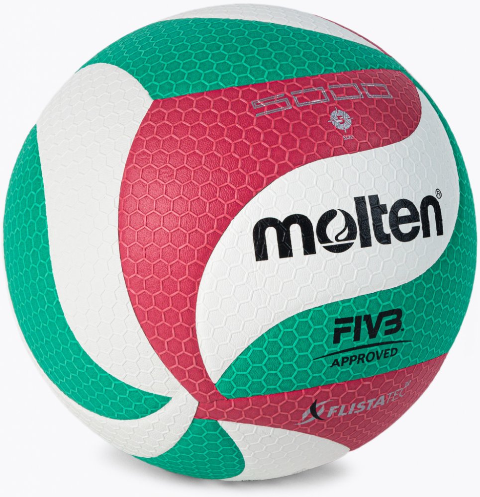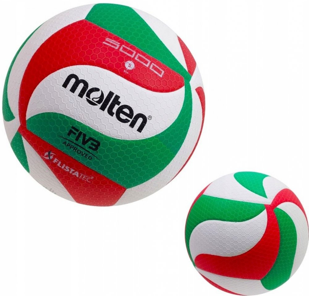 V5M5000 Molten volejbal Technická data: Materiál: kompozitní kůže - Micro-Soft vrstva 18 panelů Velikost: 5 FIVB Schválené schválení Povrch pokrytý sítí z konvexních šestiúhelníků Flistatec® Flight Stability Technology 2-vrstvý laminovaný měchýř Provozní tlak: 0,294-0,319 bar / 4,26-4,63 PSIA technologicky vyspělý volejbalový míč určený pro zápasové a tréninkové hry, označený značkou FIVB Approved...