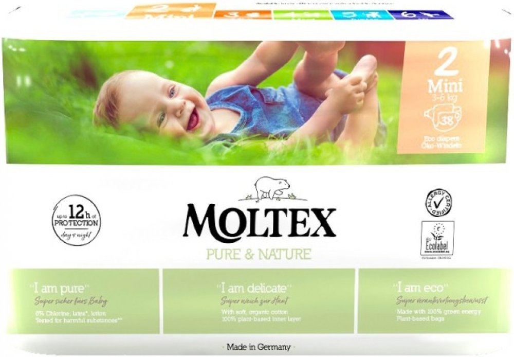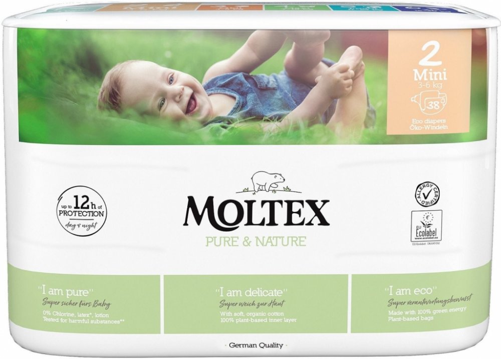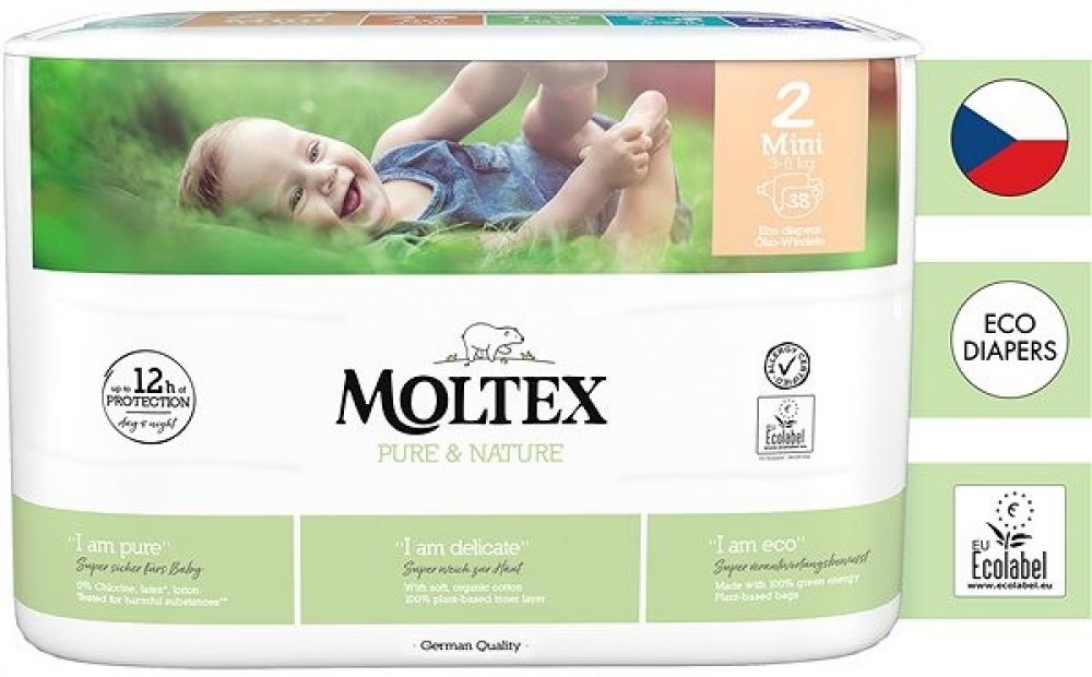 - Díky přírodním materiálům jsou ekoplenky Moltex naprosto bezpečné a hypoalergenní. Zároveň však neztrácí svoji funkčnost, která je srovnatelná s běžnými konvenčními plenkami. Plenky udrží vlhkost až 12 hodin - Vaše děťátko tak bude v bezpečí a v suchu po celou noc.