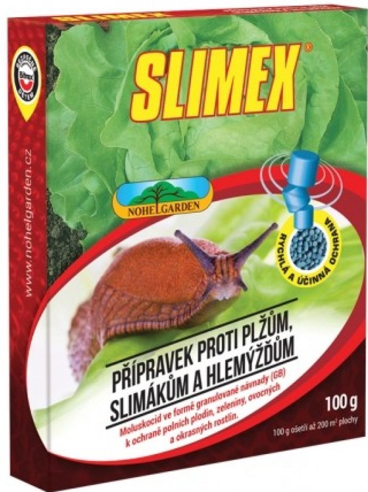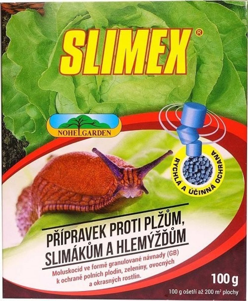 K ochraně polních plodin, zeleniny, ovocných a okrasných rostlin. Přípravek proti plžům, slimákům a hlemýžďům (moluskocid) ve formě granulované návnady k ochraně polních plodin, zeleniny, ovocných a okrasných rostlin. Obsahuje hořkou látku Bitrex, která zabraňuje jeho konzumaci dětmi, a další repelenty zabraňující konzumaci domácími zvířaty (psi, kočky, slepice). Odolný proti dešti a vlhku. Působení: Ochrana použitím granulovaných návnad je založena na jejich částečné nebo úplné konzumaci škůdcem. Hlemýždi a slimáci musejí návnadu před požitím nalézt. Požití potřebného množství návnady je klíčovým faktorem účinnost. Přípravek působí znehybnění slimáků a následuje uhynutí. Nejlepších výsledků je dosaženo aplikací v průběhu mírně vlhkého počasí, kdy jsou slimáci nejaktivnější. je velmi atraktivní pro slimáky a hlemýždě díky obsahu rostlinných atraktantů účinkuje dlouhodobě a spolehlivě granule vynikají bezprašným povrchem obsahuje zhořčovadlo Britex, které odrazuje psy a kočky od jeho konzumace vysoce odolný vůči dešti a vlhku rovnoměrně velké granule se snadno aplikují díky perforaci v obalu je registrován do širokého spektra plodin K zabránění rezistence nealitujte tento přípravek nebo jiný, který obsahuje stejnou látku typu aldehydů (např. metaldehyd) po sobě bez přerušení ošetření jiným insekticidem s odlišným mechanismem účinku. Přípravek není dostatečně účinný proti plzáku španělskému.