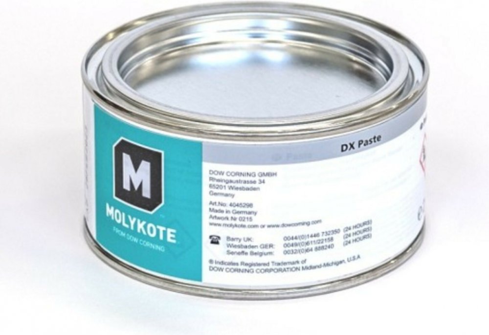 Molykote DX Paste je vynikající mazací tuk na kovy s obsahem tuhých maziv, určený na mazání závitů, montáž a dlouhodobé mazání kovových dílů. Pasta Molykote DX vytváří vysoce kluzné plochy obzvláště při nízkých až středních rychlostech, takže lze následně plochy třecího styku vystavit silné zátěži.