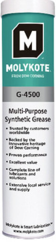 Molykote G-4500 je špičkové syntetické mazivo (syntetický tuk na bázi PAO), které jako jedno z mála maziv vyhoví jako univerzální syntetický tuk v širokém teplotním rozmezí se značnou slučitelností s nejrůznějšími materiály. Oblast použití je velmi široká od nábytkářství, přes přístrojovou techniku po optometrické vybavení.
