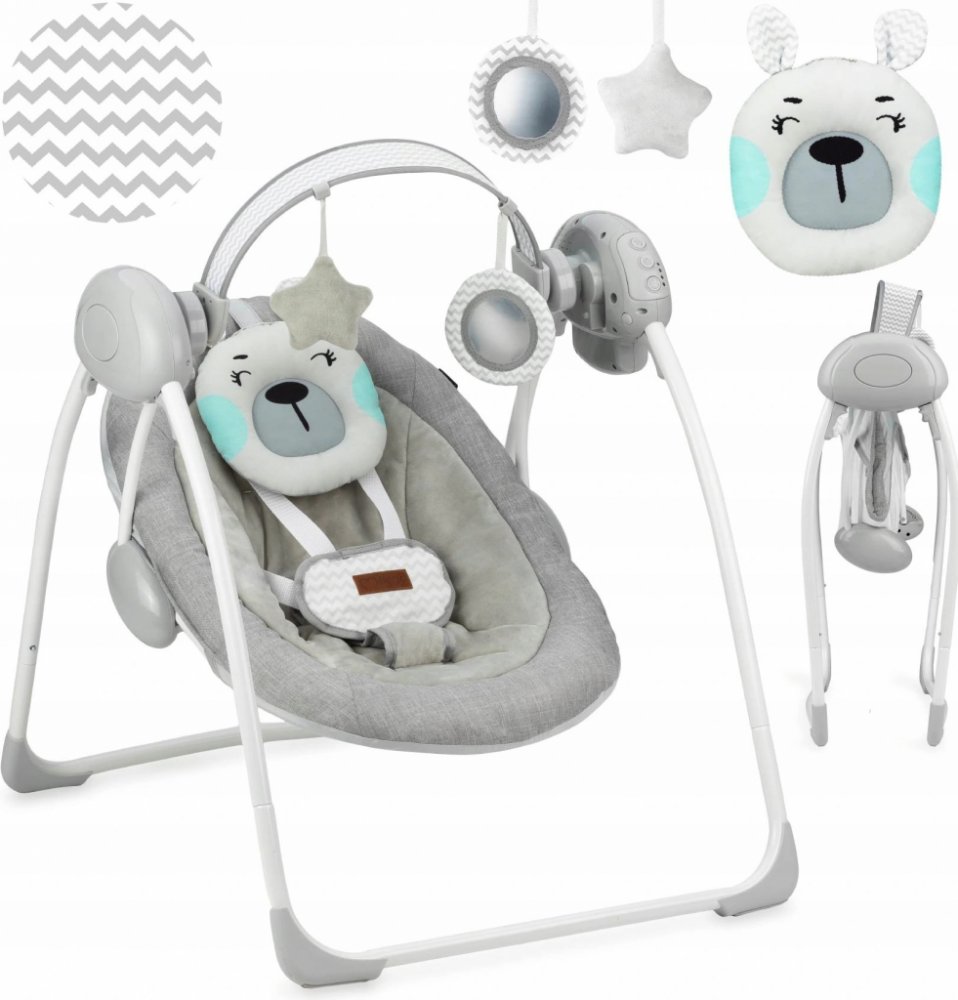 Nosnost sedátka je vhodná od narození do 9 kg. Sedadlo je možné nastavit do 3 poloh sklonu, houpání pak nabízí 5 různých rychlostí. Houpátko je napájené pomocí baterií – ty vydrží až 180 hodin. Konstrukce je velmi stabilní, má protiskluzové nožičky a sedátko je vybaveno 5-ti bodovými pásy s krytou přezkou.