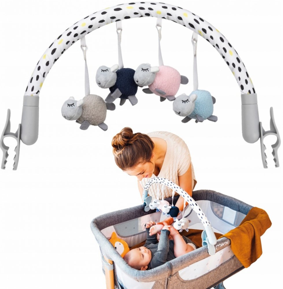Když dítě leží na bříšku, je důležité mít hračky na dosah ruky. Ovečky na hrazdičce MoMi JOY podporují první pokusy o jejich uchopení.