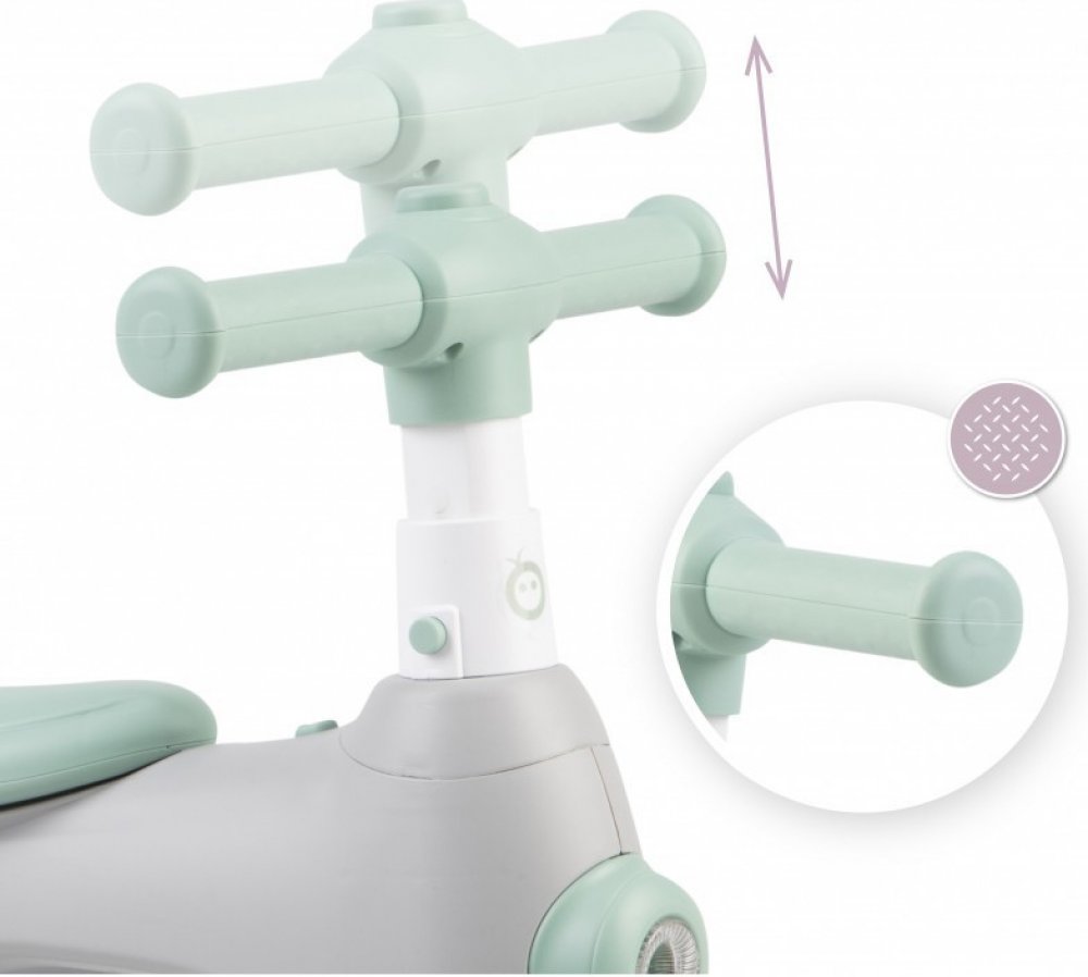 MoMi TOBIS je nejen atraktivní svými funkcemi, ale také velmi praktický a bezpečný. Na řídítkách jsou protiskluzové podložky, které posilují úchop dítěte. Řidítka mají tříbodové nastavení výšky, takže je můžete přizpůsobit svému dítěti.