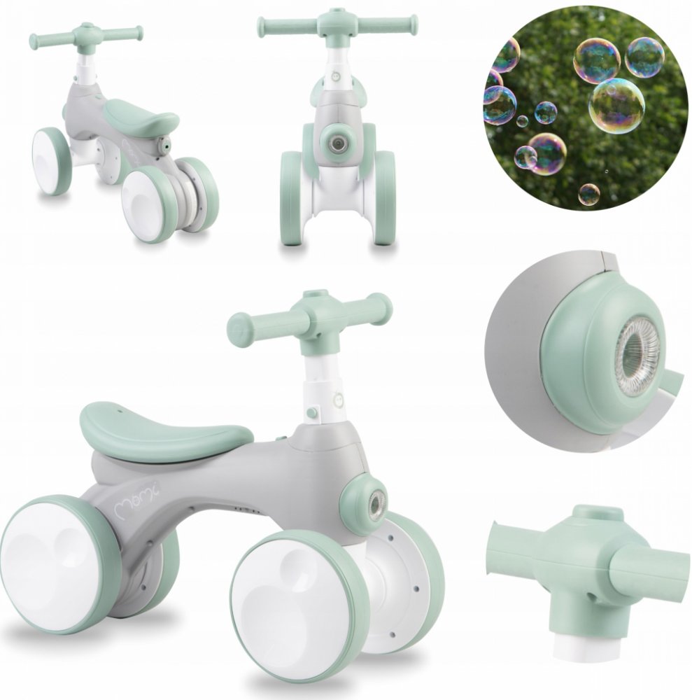MoMi TOBIS ride-on je první jízda vašeho dítěte! Zajišťuje zdravý vývoj a zároveň zábavu - učí rovnováze a pomáhá rozvíjet motoriku. Navíc má skvělé atrakce - klakson, světlo, které mění barvu, a něco, co děti milují - bubliny!
