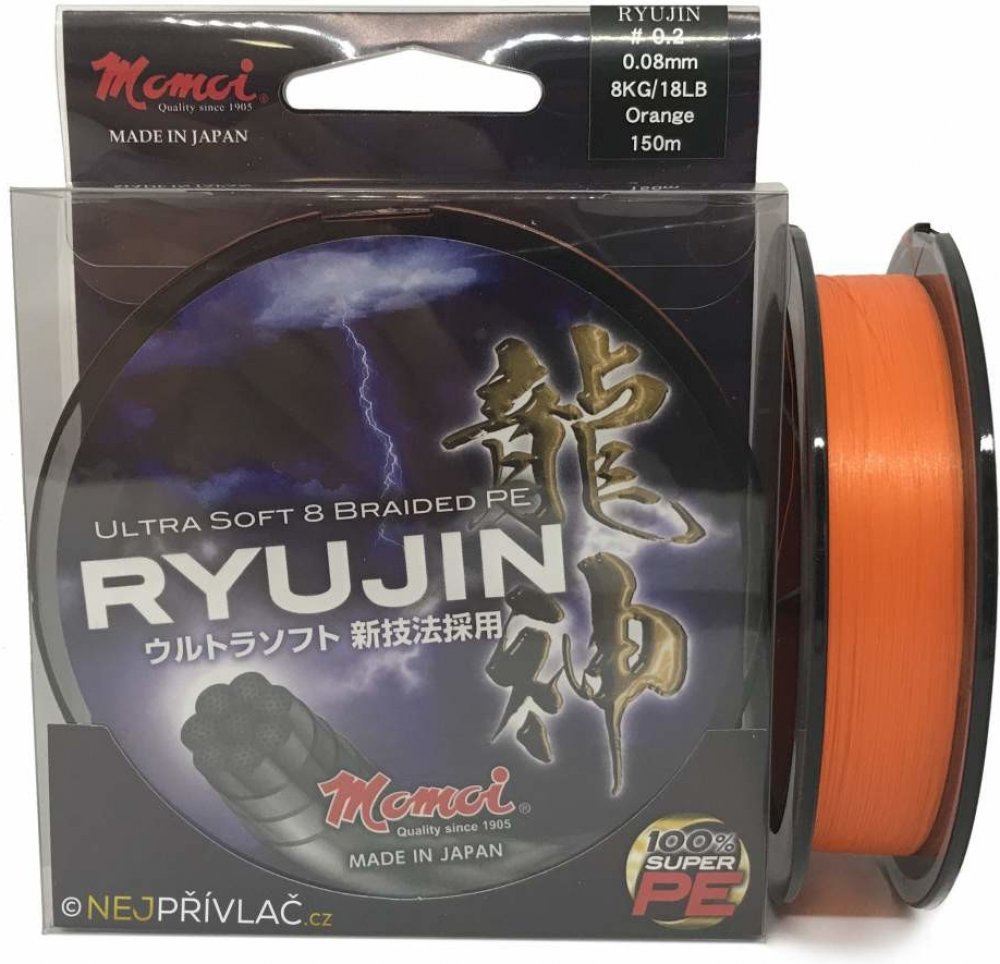 RYUJIN Výjimečné splétané vlákno(šňůra) vyrobené japonskou společností Momoi, která vznikla v roce 1905! Tato jedinečná 8 vláknová šňůra představuje v současné době absolutní technologický vrchol. Extra pevné HPPE vlákno je zároveň i velice jemné a ohebné v porovnání s ostatními, výsledkem je pravděpodobně nejměkčí splétaná šňůra na trhu! Byla oceněna hlavní cenou na světové výstavě EFTTEX 2013! P...
