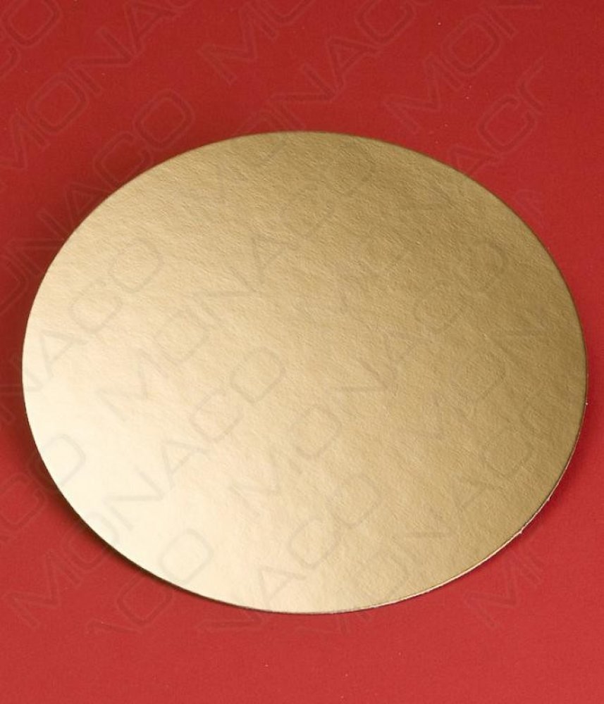 Papírová podložka kulatá na malé porce, potažená zlatou fólií odolnou proti vlhku.