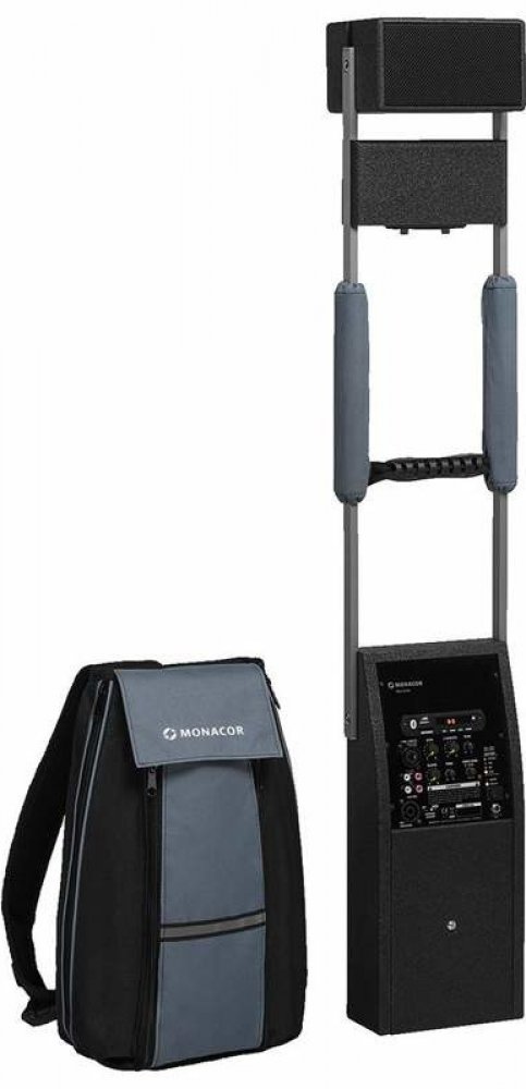 Monacor PAS-254D přenosný ozvučovací systém 02-4-2003 Prenosný ozvučovací systém určený na nosenie na chrbáte v pribalenom batohu. Systém je vhodný na procesie a ostatné mobilné aplikácie. Obsahuje reproduktor pre efektívne ozvučenie sprievodu. Vstavaná batéria (12V/7.2Ah) zabezpečuje nepretržitú prevádzku až na 8 hodín. Systém má vstavanú automatickú nabíjačku akumulátora. K systému je dodávaný 1...