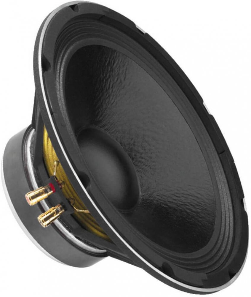 Středobasový značkový reproduktor MONACOR s RMS výkonem 300 Wattů a impedancí 8 Ohmů je vhodný pro profesionální systémy.