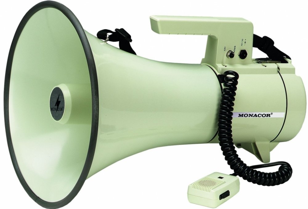 S našou radou spoľahlivých megafónov ponúkame perfektné riešenie pre každého. Pri výbere toho správneho megafónu treba brať do úvahy niekoľko základných kritérií. Prevádzkový rozsah patrí určite medzi najdôležitejšie kritérium. Treba si pamätať, že s narastajúcim akustickým tlakom (v dB) sa zvyšuje prevádzkový rozsah megafónu. Okrem toho je možné si vybrať medzi megafónmi s integrovaným mikrofónom, s ručným mikrofónom alebo jednotku s pridaným bezdrôtovým mikrofónom. Každý megafón značky MONACOR je napájaný štandardnými batériami. Ako alternatíva k niektorým megafónom je pridané 12 V pripojenie na adaptér. Veľkosť, hmotnosť a už spomínané napájanie sú ďalšie výberové kritéria pri výbere správneho megafónu. S týmito základnými kritériami určite nájdete ten ideálny a správny megafón veľmi rýchlo a splníte si tie vaše individuálne požiadavky. Technická špecifikácia: - ručný mikrofón - tlačidlo na uzamknutie mikrofónu - rúčka - ramenný popruh - pripojovací kábel pre motorové vozidlá - siréna - ovládanie hlasitosti - 8 mm závit - výstupný výkon (PMAX) 35 W - citlivosť 122 dB - napájanie 8 x 1,5 V batérie C veľkosti (nie sú súčasťou balenia) - 12 V napájanie - rozmery O 300 x 460 mm - hmotnosť 2,5 kg | Monacor | Monacor