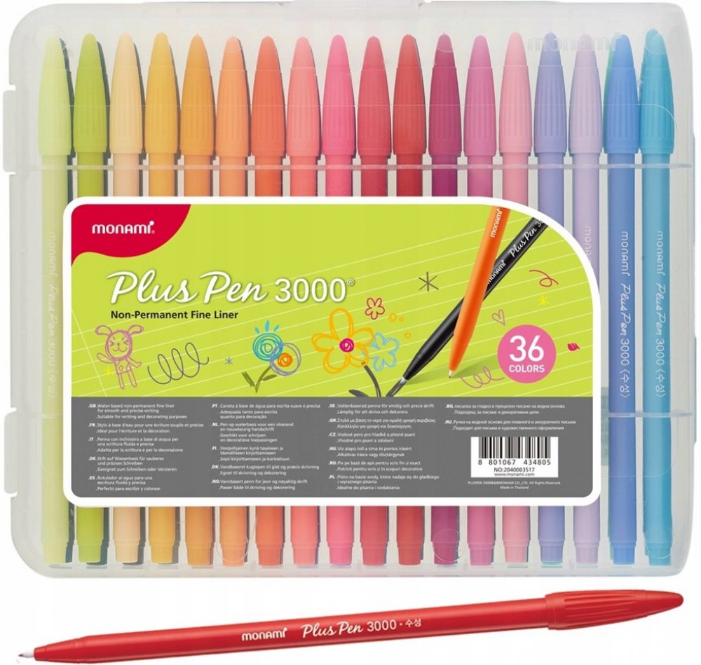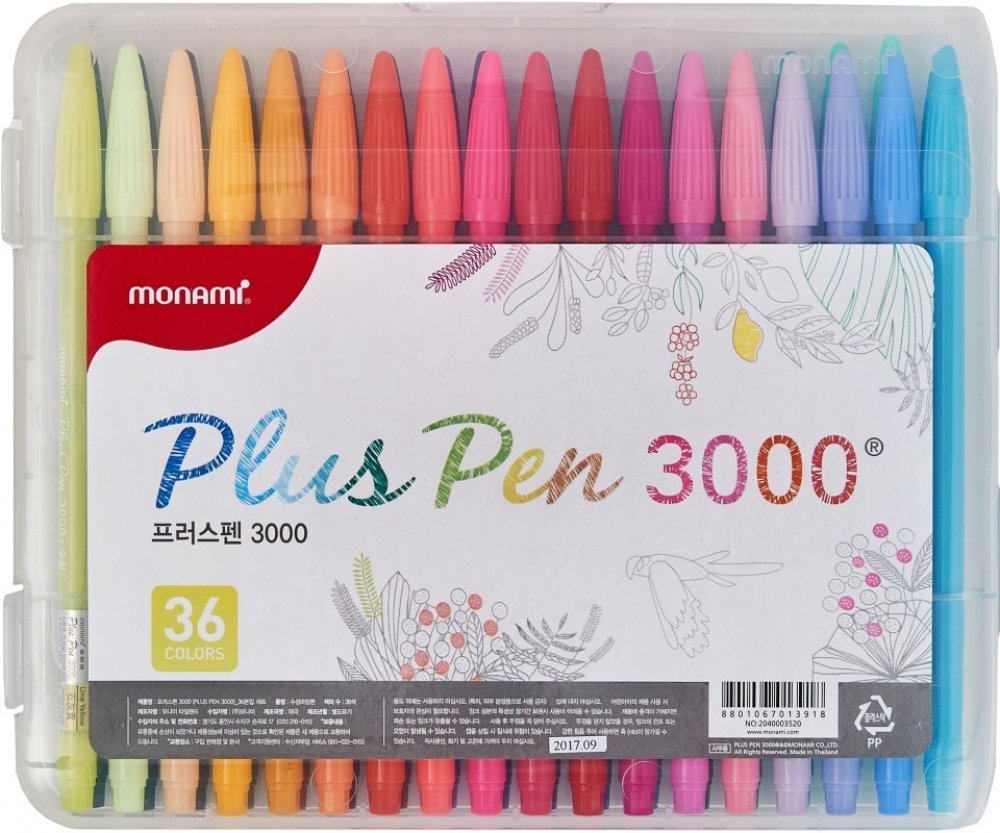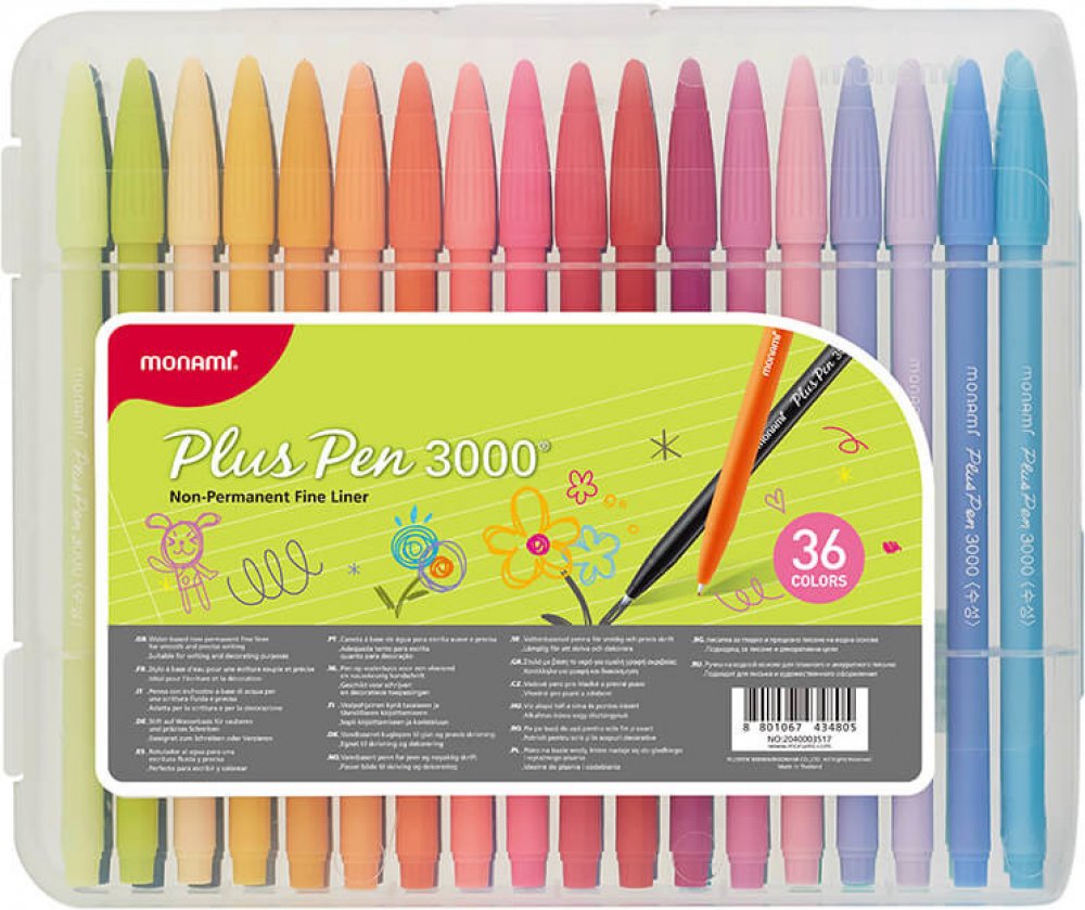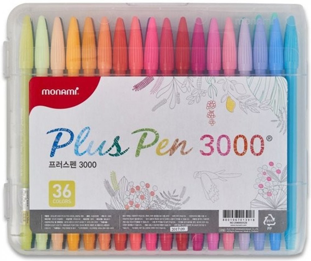 Skvělá sada popisovačů s flexibilním hrotem Monami Plus Pen 3000. Popisovače mají flexibilní hrot pro tenkou i silnější stopu, barva jejich těla je shodná s barvou náplně. Popisovače jsou díky svému hrotu vhodné na kaligrafii, jak moderní tak i falešnou, na kresbu i malbu, jsou rozmyvatelné vodou. Popisovače jsou příjemné do ruky a mají dlouhou životnost.