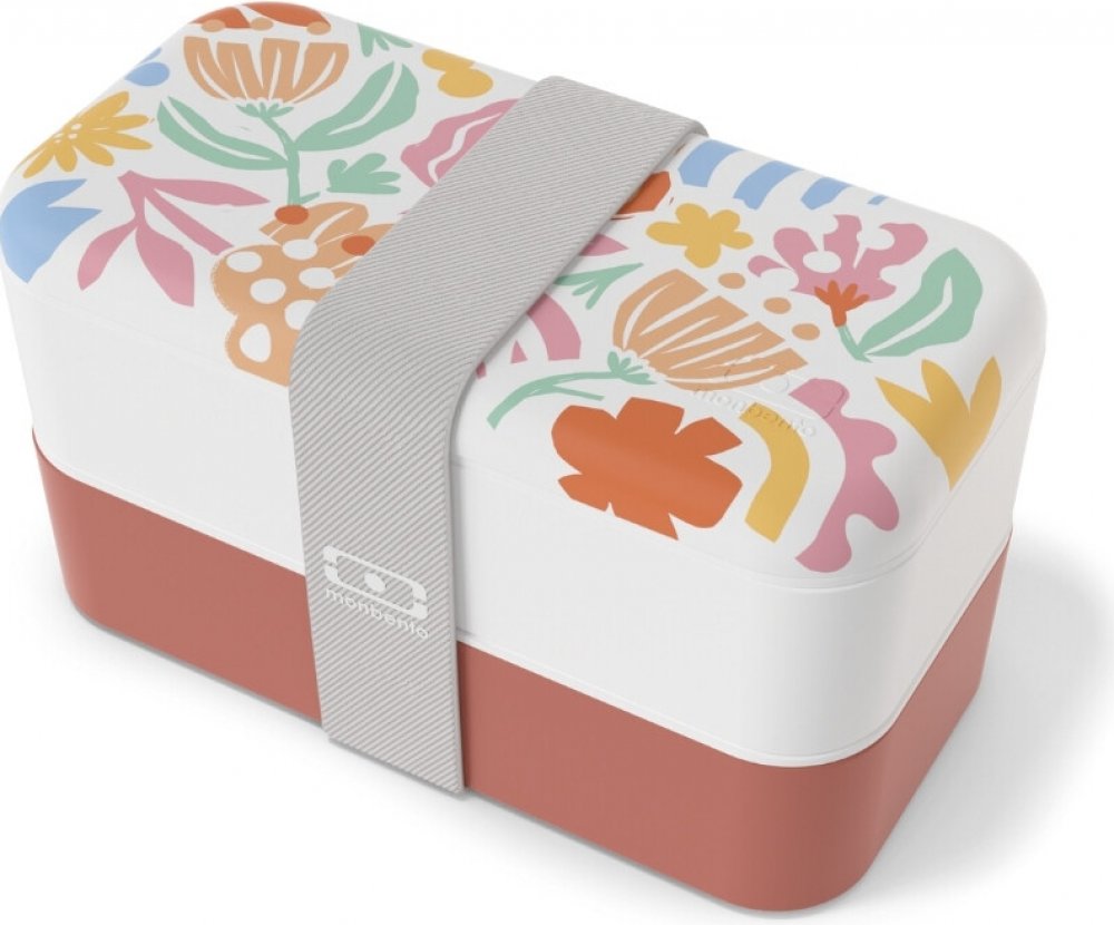 Váš oběd či svačinka ještě nikdy nevypadaly lépe. Obědový box Monbento má dokonalý francouzský šarm a je dvoupatrový. Tento typ je dotažený k dokonalosti barevnými grafickými motivy. Dvě samostatné plastové krabičky, každá o objemu 500 ml, nabízejí dostatek úložného prostoru na každé jídlo. Každá obědová krabička na jídlo má své vlastní silikonové víčko. Takto dokážete oddělit jednotlivé komponenty od sebe. Víčko dokonale těsní, díky zátce je také dokonale vzduchotěsné. Nemusíte tak mít vůbec žádný strach, že vám jídlo při přenosu vyteče z obědové krabičky do tašky. V jednom z lunchboxů pak najdete menší krabičku na dresing či omáčky.