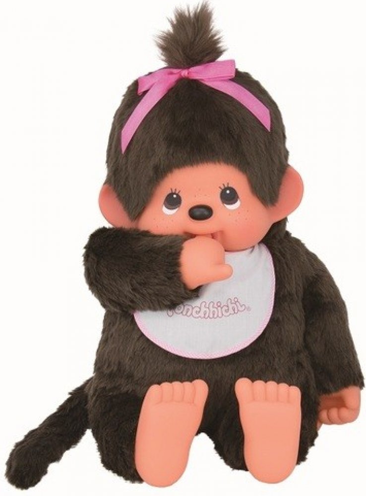 MONCHHICHI, mončičáci 80 cm , nebo dívka Mončičáci, vlastním jměnem Monchhichi, se zrodili v hlavě pana Sekiguchiho z Japonska. Před zhruba třiceti lety si vyjel na výlet do Německa a při návštěvě obchodu s hračkami uviděl překrásnou panenku. Zalíbila se mu natoli, že se rozhodl podle ní vytvořit novou hračku pro děti. Hračku, která by dětem přinášela poselství o kráse lásky a přátelství. Monchhichi Mončiči dívka s bryndákem XL 80cmMončičák 80 cm CLASSIC - Monchhichi XL holčička