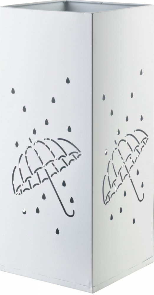 Linte zaujme na první pohled svým nápaditým výřezem s motivem deštníku a kapek deště. Tento hravý detail dodává jinak jednoduchému válcovému tvaru charakter a zároveň plní funkční roli – otvory podporují cirkulaci vzduchu, díky čemuž mohou mokré deštníky rychleji vyschnout a nedochází k hromadění vlhkosti uvnitř stojanu.