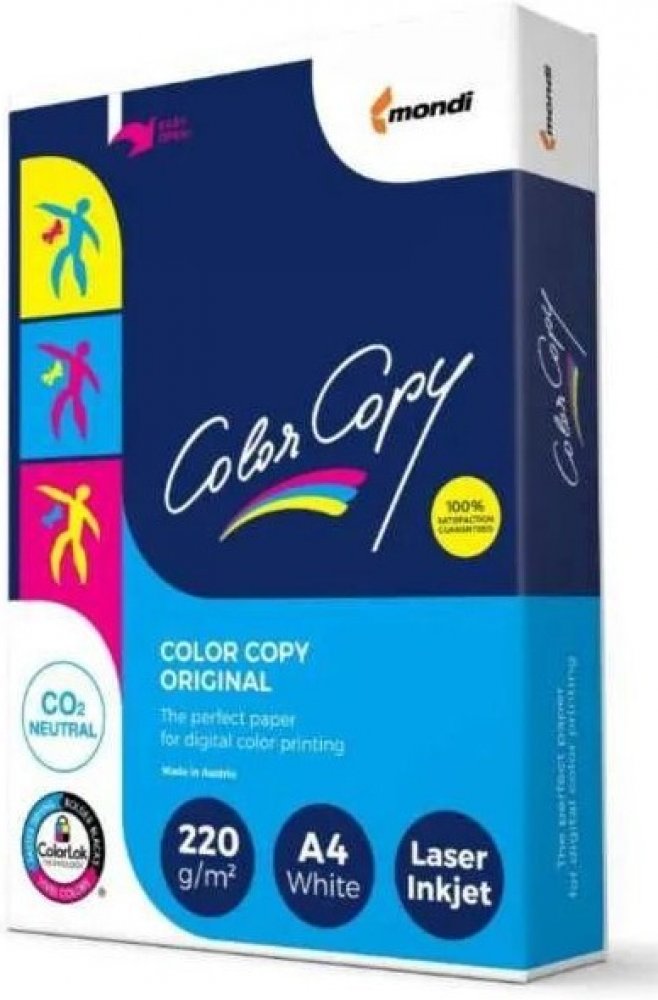 Color Copy je speciální bílý lehce satinovaný papír poskytující uživateli dokonalou kvalitu při tisku v laserových zařízeních. Jde o speciální oboustranně upravený papír určený především pro tisk všech reprezentativních materiálů - například katalogů, kalendářů či vizitek atd. Brilantní barvy a ostrost Vás nenechají na pochybách. Vysoká bělost CIE 161, opacita 99 %. Balení: 250 listů. Cena za bale...