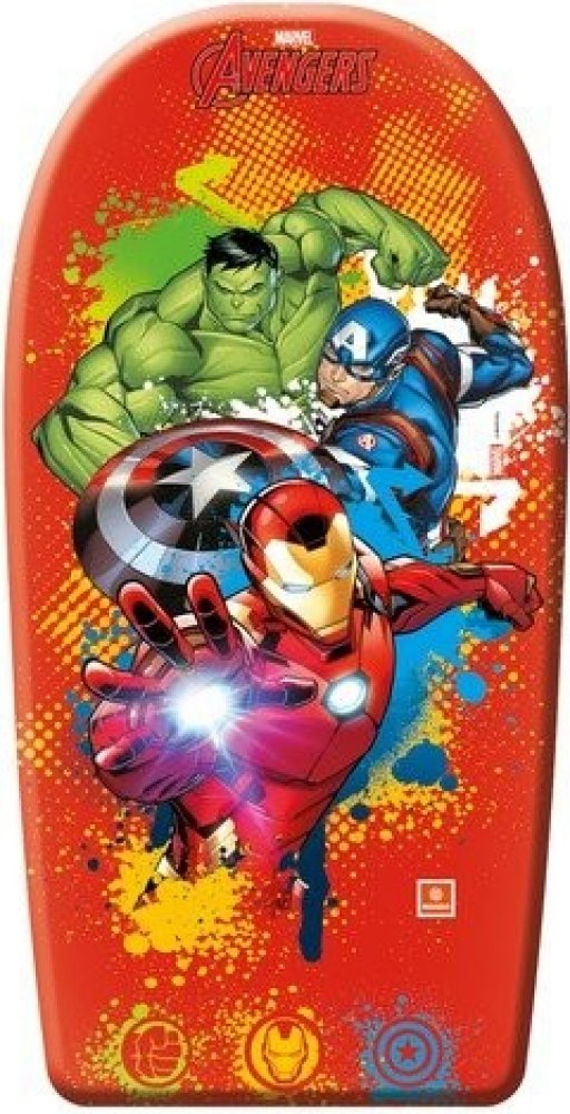 Mondo Plovací deska Avengers 104 cm 11105 , výrobce Mondo. Plovací deska pro děti. S motivem oblíbeného filmu Avengers. Plovací desky jsou skvělou moderní pomůckou jak při výuce plavání, tak i pro chlapce i dívky, které umí plavat. Jako pomůcka slouží tak, že dítě si plovací desku uchopí po obou stranách, lehne si na břicho a kope nohama, čímž se pohání do předu a učí se plavat. Deska dítě udrží nad vodou. Pro plavce ale přináší i skvělou zábavu - hlavně u moře, kde se s ní mohou vyřádit ve vlnách. Velikost 84 cm