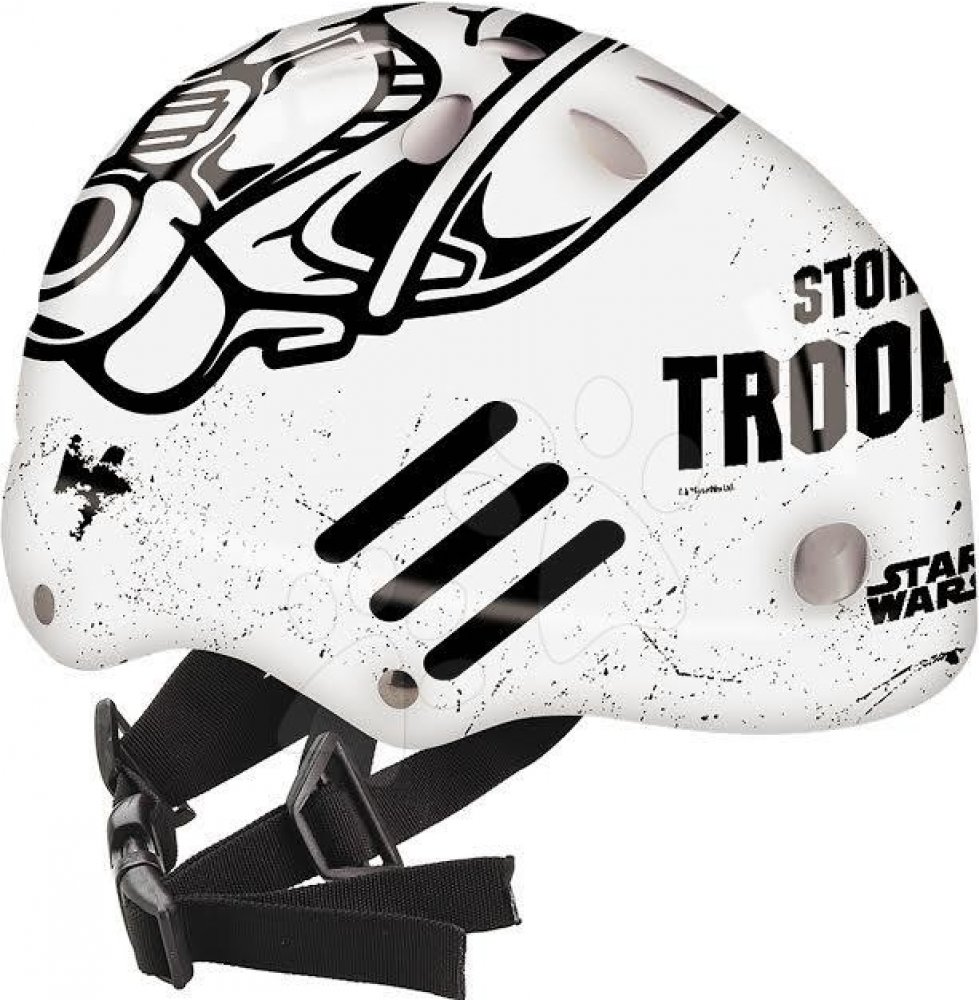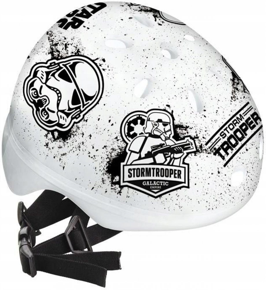 Mondo dětská helma Star Wars je úžasná helma s filmovým motivem, která je vhodná pro chlapce od 3 let. Je to velmi spolehlivá ochranná pomůcka při různých dětských sportech a hrách. Přilba pro děti je lehká, pevná. Výhodou jsou větrací otvory a pohodlné nošení díky pevnému upevnění pod bradou. Motiv Star Wars upoutá každého chlapečka, bez svého stylového zařízení pro sport se nepohne ani na krok.