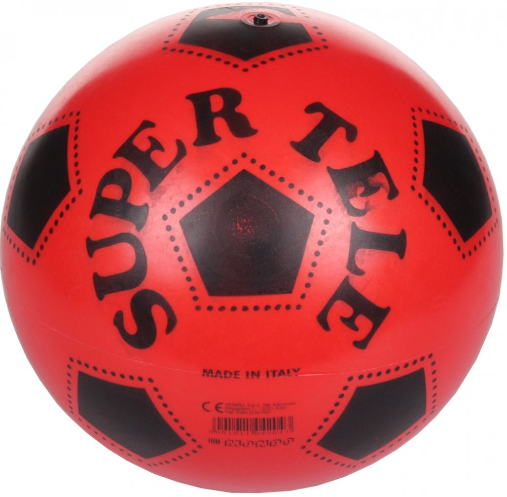 Míč potištěný gumový Super Tele - 230 mm. Určený na hraní dětí, potisk imituje fotbalový míč.