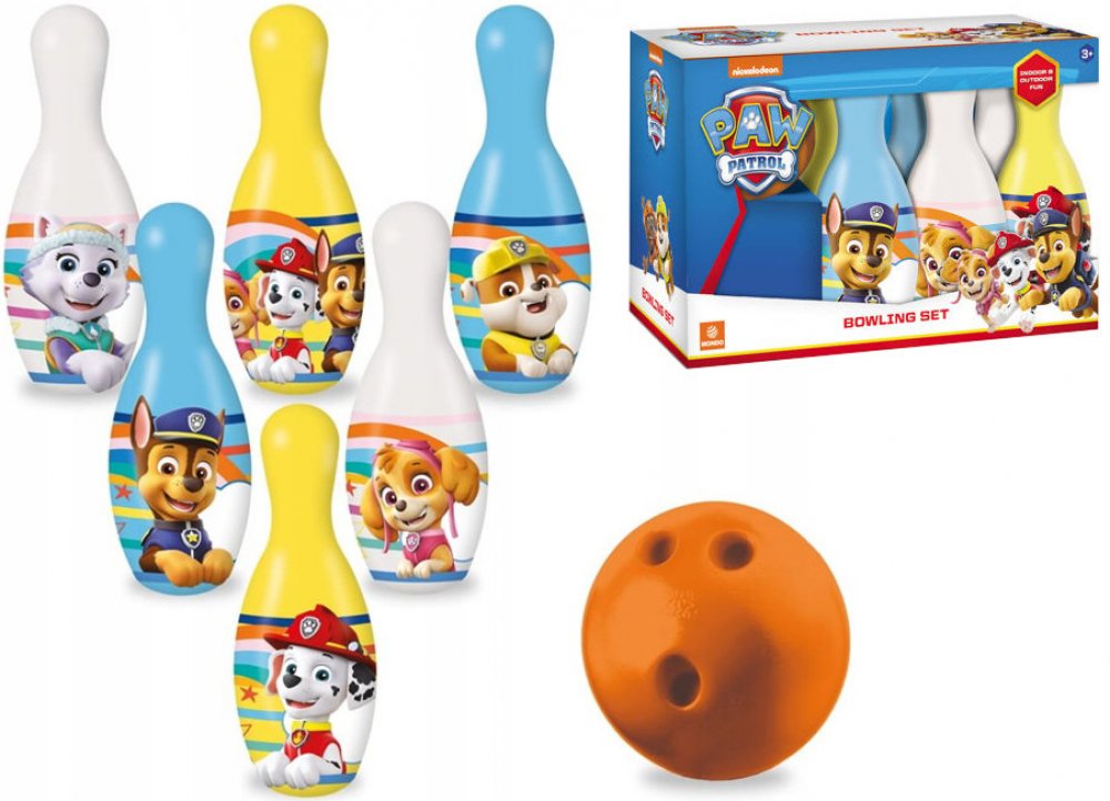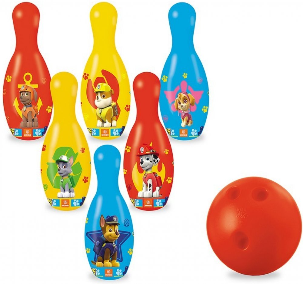 Sada od italského výrobce MONDO je kvalitní a mimořádně pěkná bowlingová sada pro dívky a chlapce od 3 let. V dětské kolkové soupravě se nachází 6 barevných kuželek s veselými obrázky z pohádky Paw patrol a červená bowlingová koule. Kuželky vysoké 18 cm jsou vyrobeny z kvalitního plastu a jsou mimořádně dobře vyvážené. Koule je akorát těžká a velmi dobře padne dítěti do ruky. Tato souprava jistě přinese dětem mnoho radosti. Kuželky (nebo bowling) jsou velmi zábavnou hrou, která se dá hrát i uvnitř i venku.