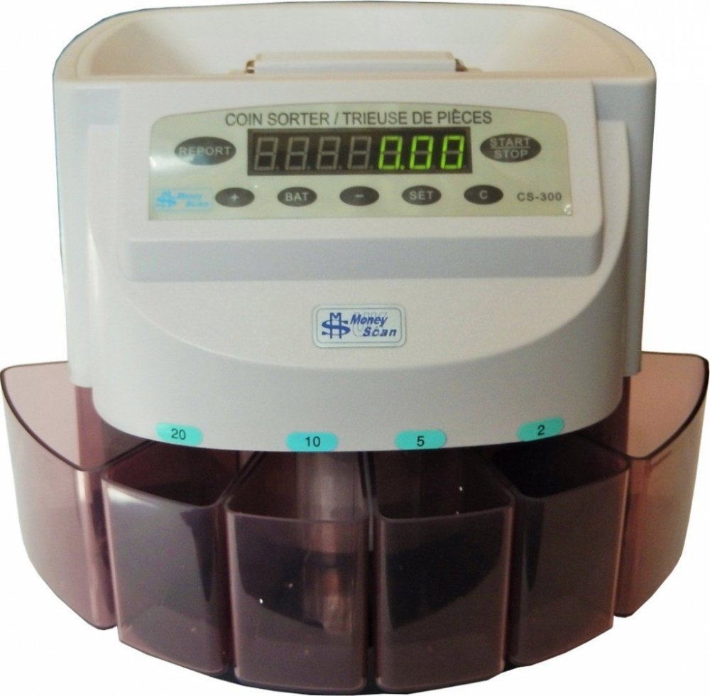 Počítačka a třídička mincí CS-300 CZK ve verzi na české koruny nebo CS-300 E ve verzi pro euro. Šetří čas a práci. Pomáhá eliminovat ztráty způsobené lidskou chybou. Počítá a současně třídí, přičítá a umožňuje dávkování. Výsledek je zobrazen jakou celková hodnota (např. 100 Kč) a reportem lze zob-razit spočítané kusy jednotlivých nominálů (např. 5 x 20,-Kč)