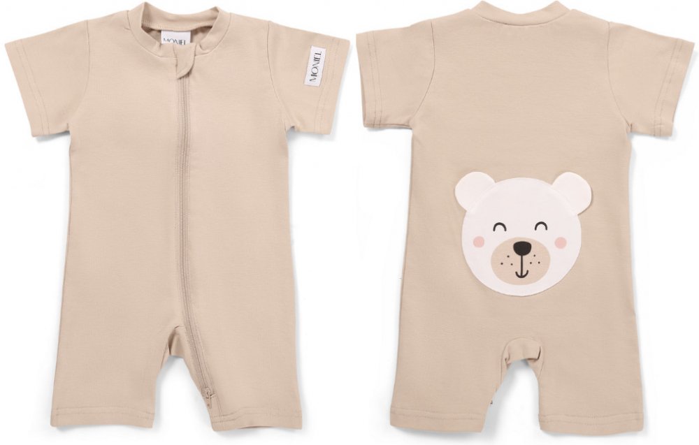 Moniel Dětský overal s krátkým rukávem Medvěd Pastel béžová