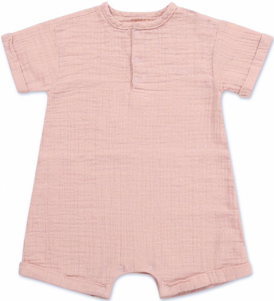 Moniel dětský rostoucí mušelínový overal s krátkým rukávem Pink