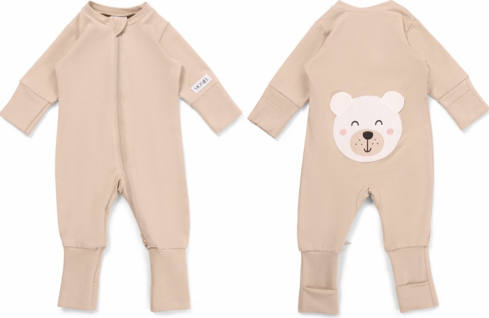 Rostoucí dětský overal na zip Moniel Overal Medvěd Pastel béžová je inovativní a jedinečný produkt svého druhu. Overal se dokonale přizpůsobí vašemu děťátku po celý rok.