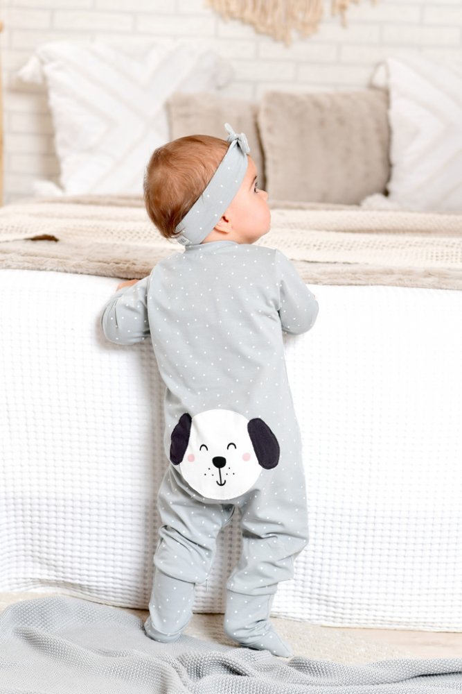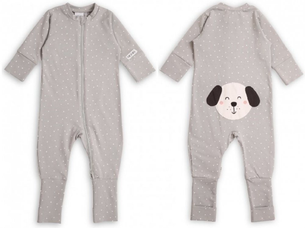 Moniel Dětský rostoucí overal Pes Dots šedá